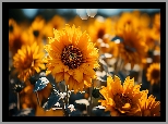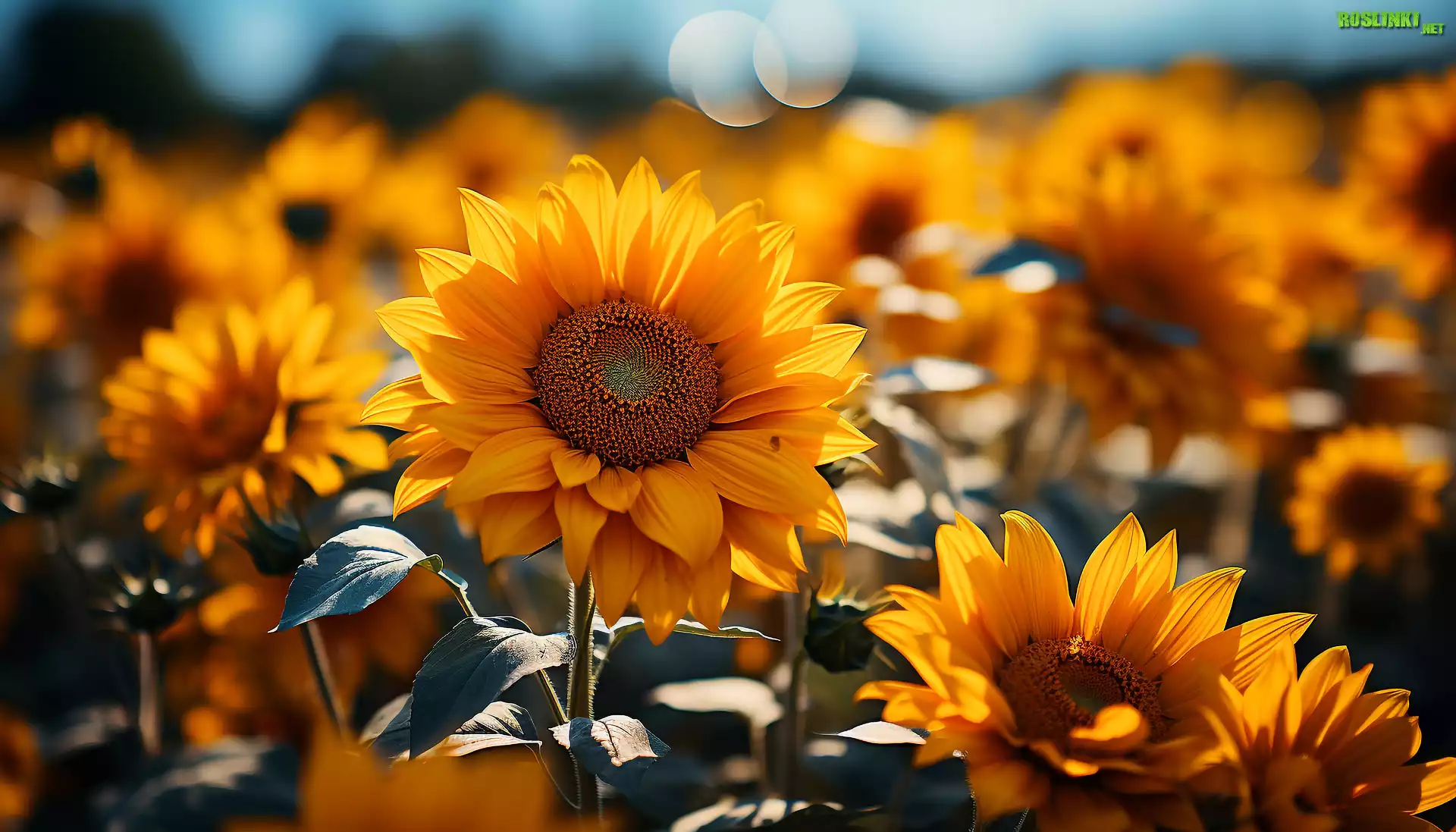 Rośliny: Kwiaty, Żółte, Słoneczniki, Liście