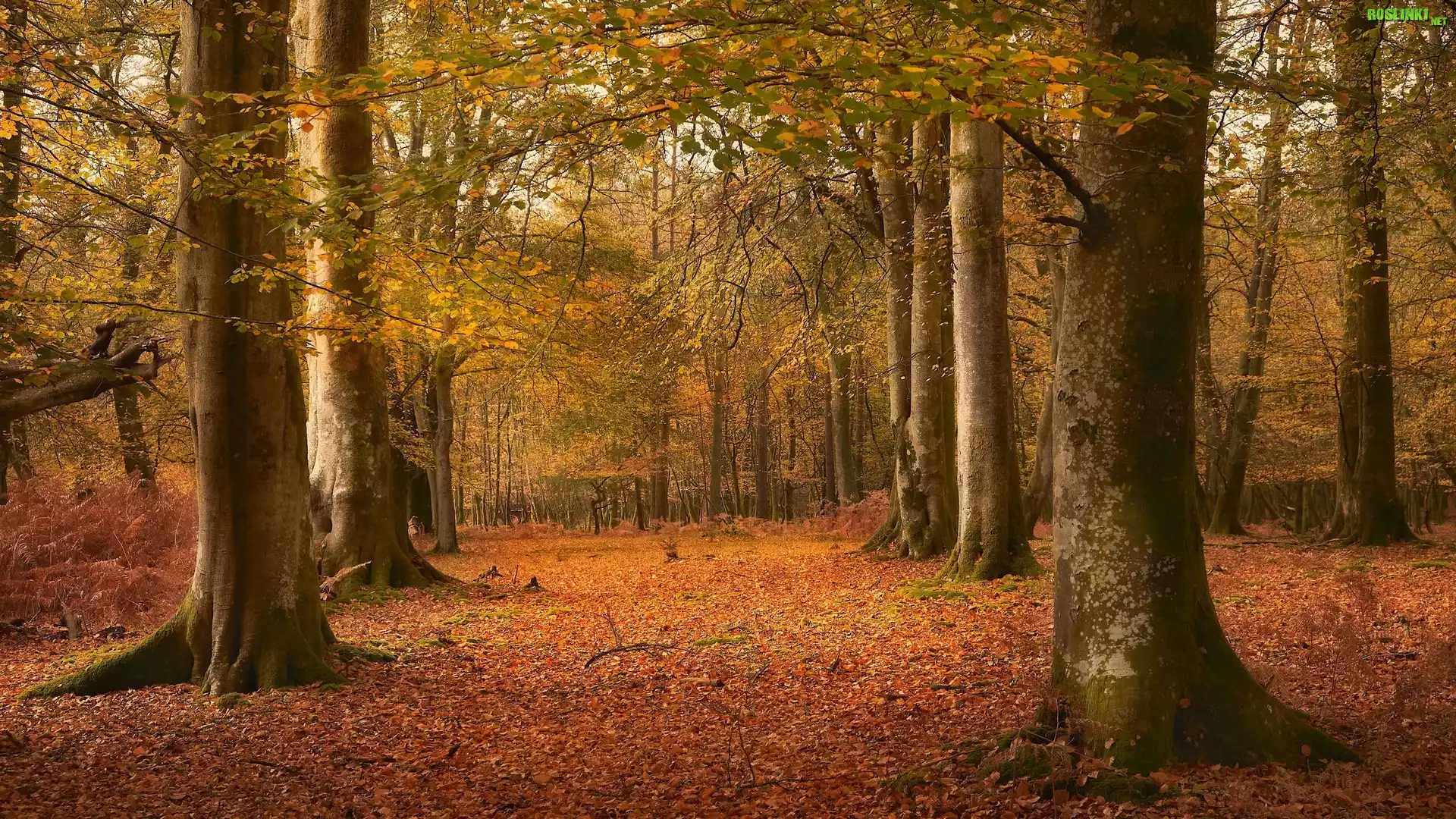 Rośliny: Drzewa, Liście, Pnie, Jesień, Las