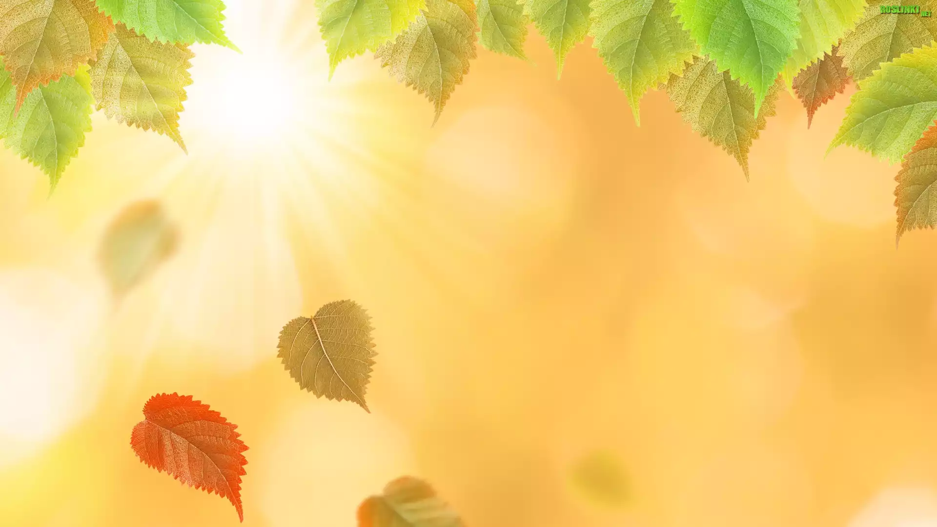 Rośliny: Liście, Promienie słońca, Rozmyte tło