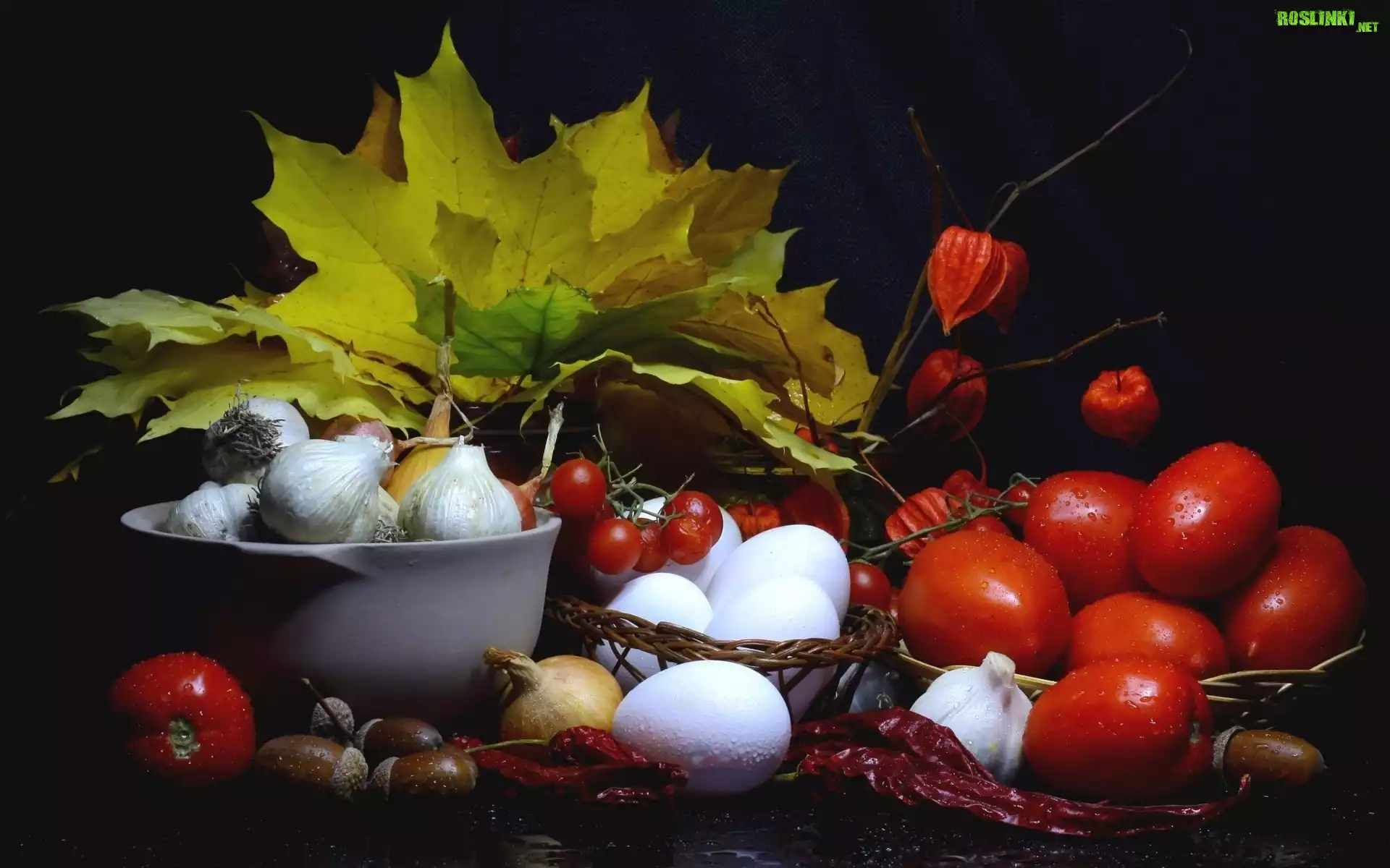Liście, Żołędzie, Jajka, Warzywa, Kompozycja