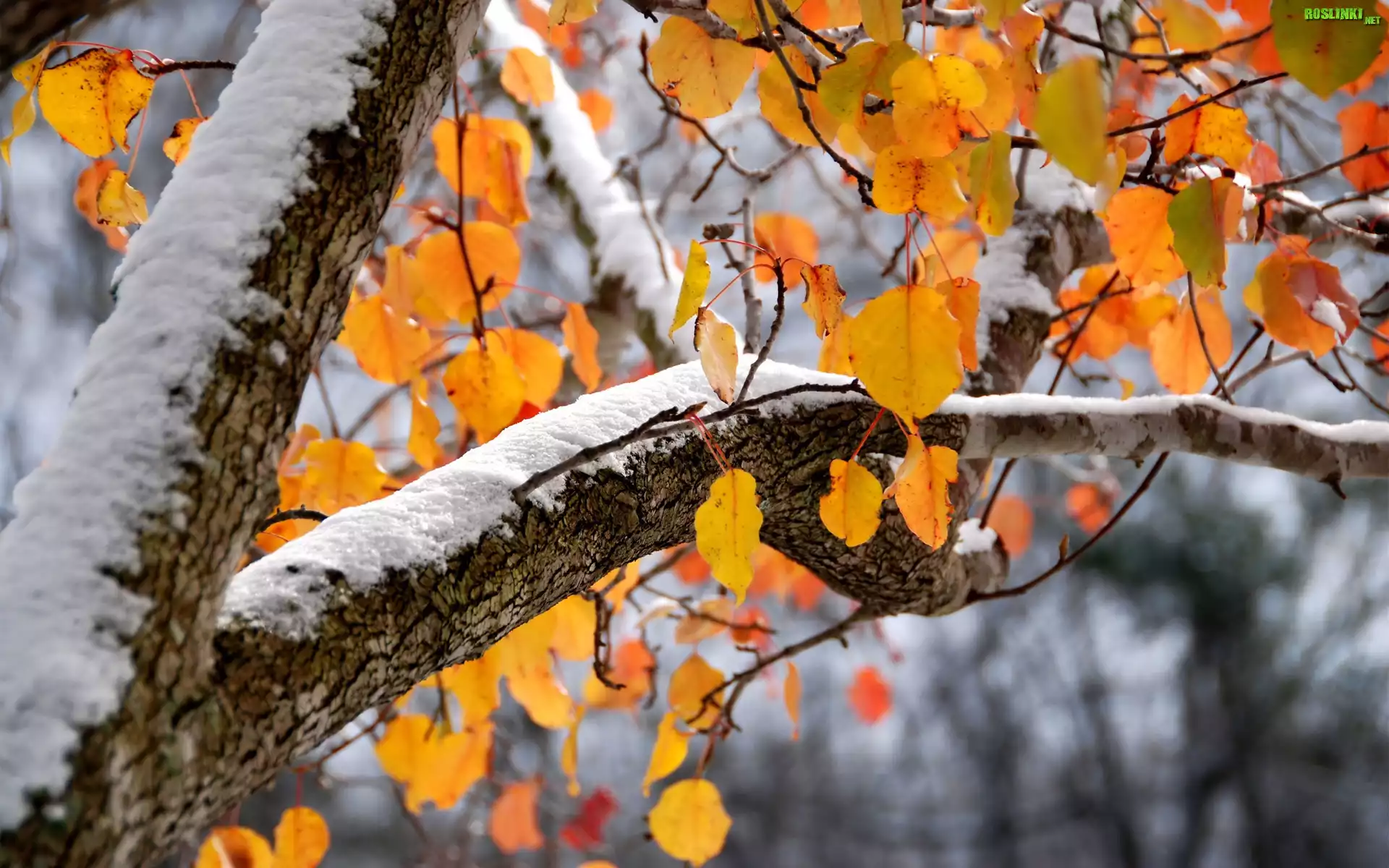 Rośliny: Liście, Drzewo, Jesień, Zima, Śnieg