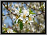 Białe, Kwiaty, Zielone, Listki, Drzewo owocowe, Gałązka