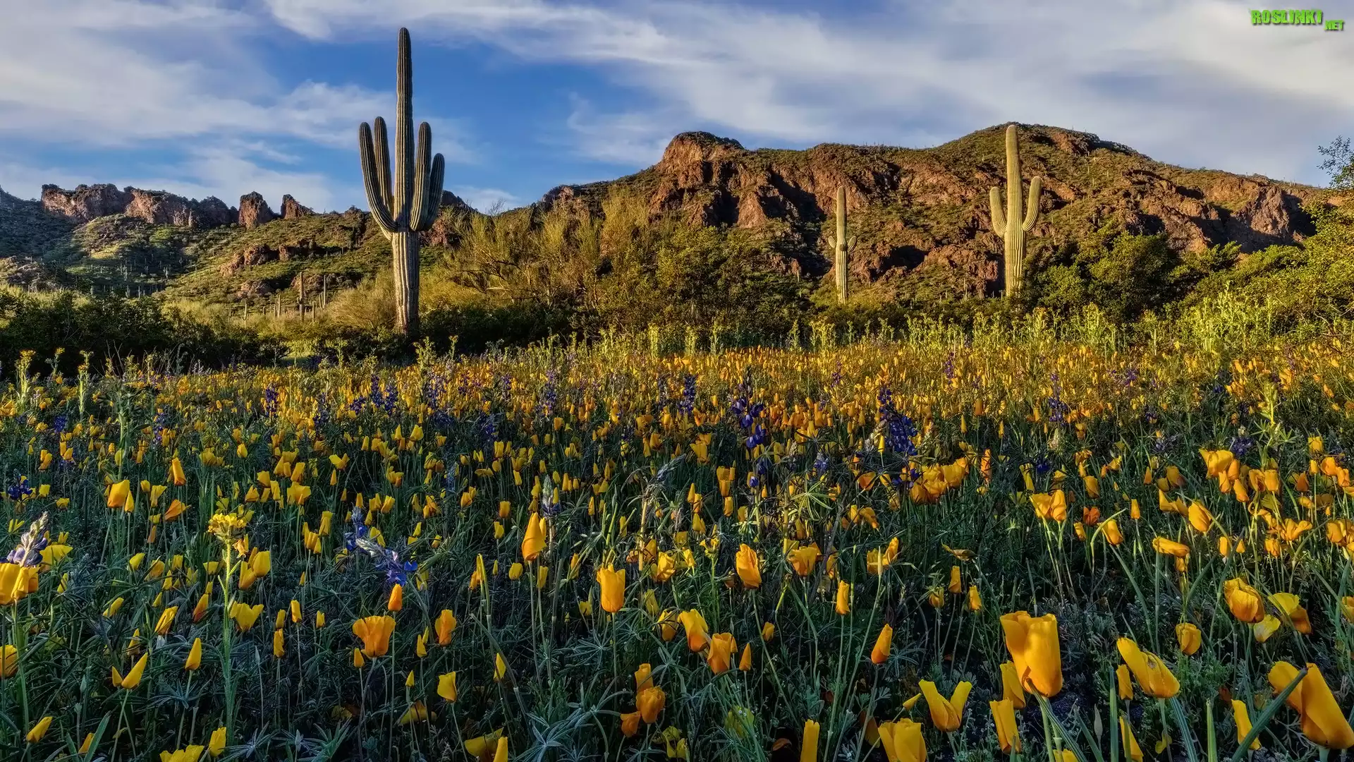 Rośliny: Góry, Kaktusy, Kwiaty, Łubin, Pozłotki, Łąka