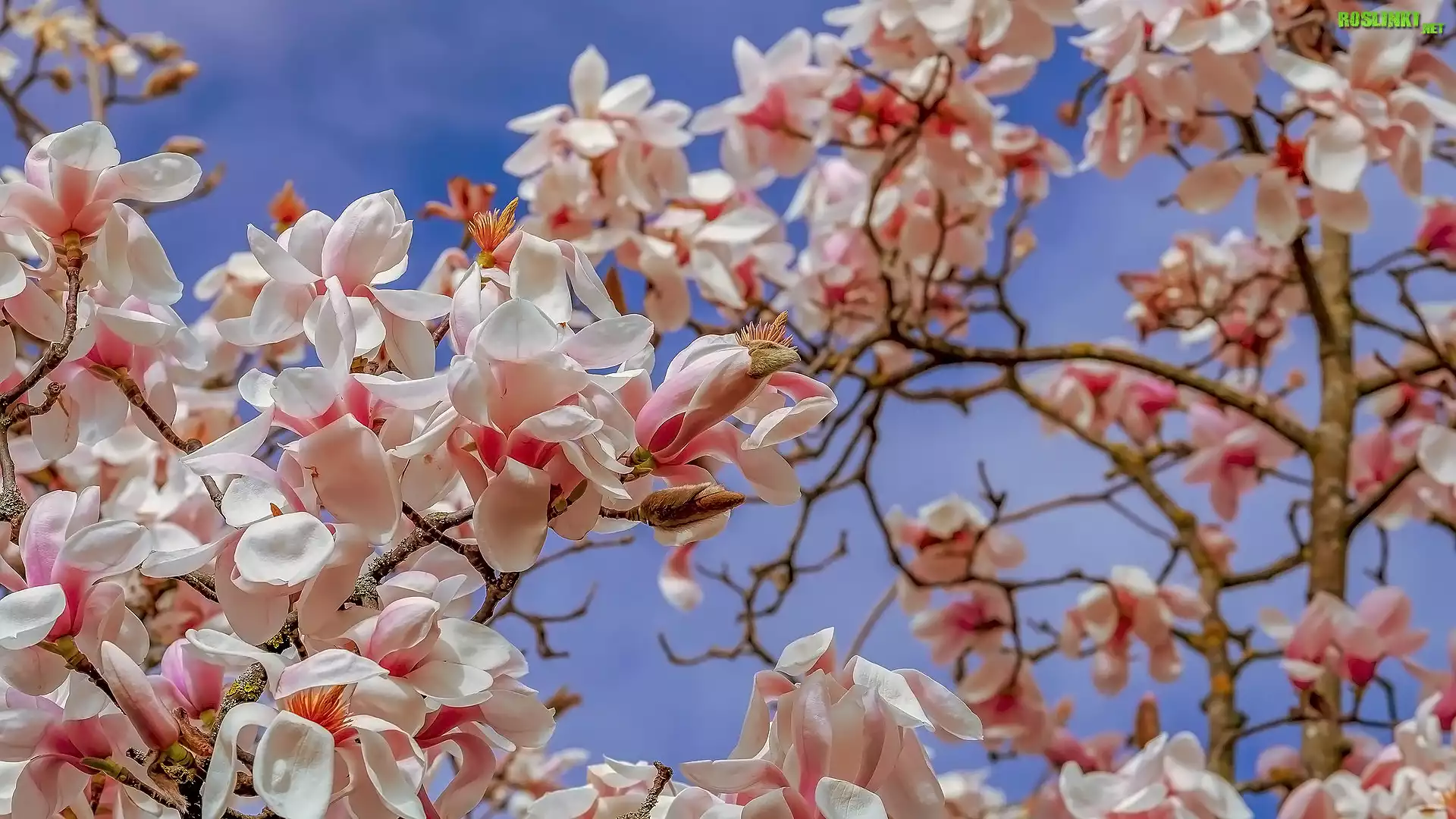 Rośliny: Magnolia, Biało-różowe, Kwiaty, Gałązki