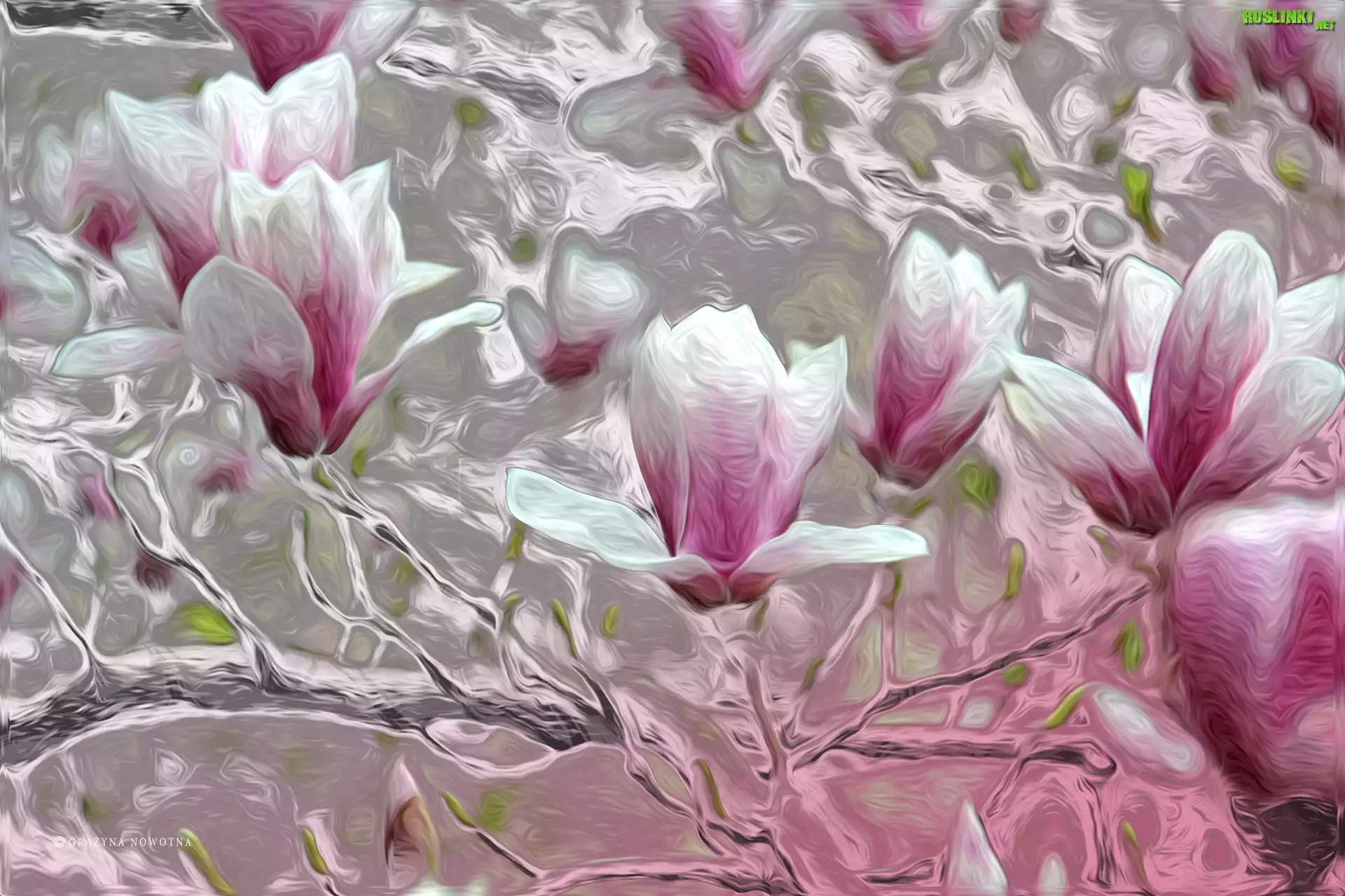 Magnolie, Kwiaty, Krzew, Grafika