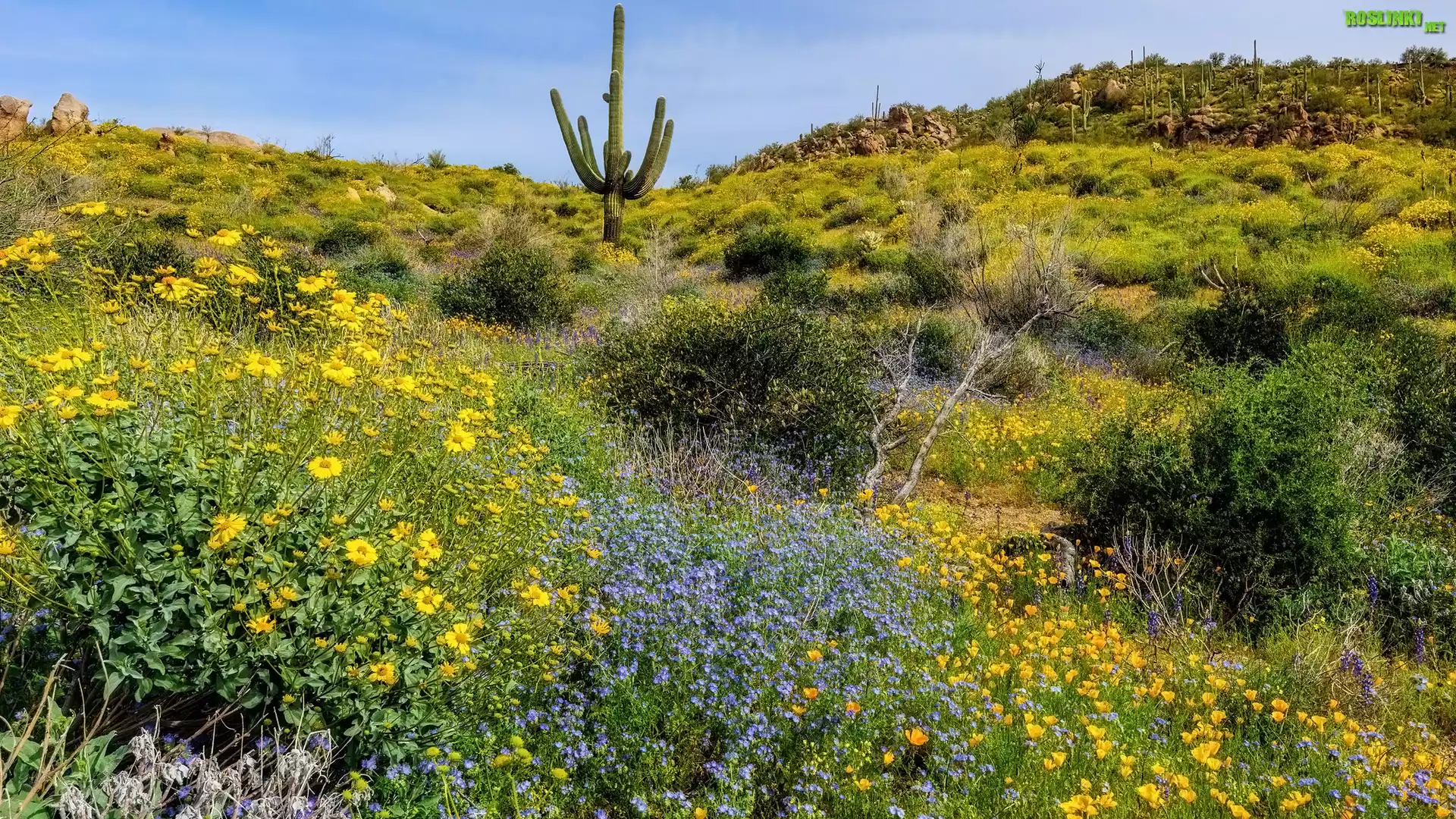 Rośliny: Kwiaty, Maki, Kaktusy, Trawa, Wzgórza