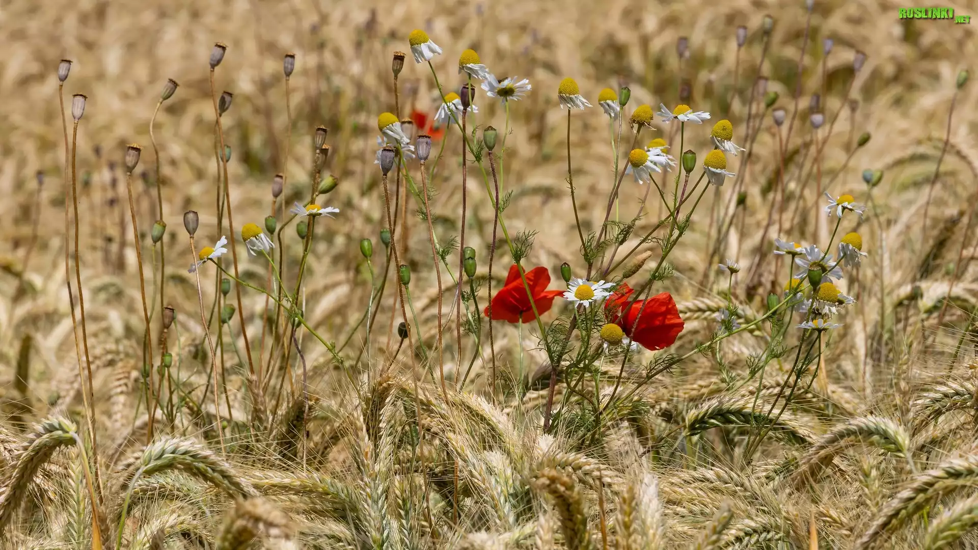 Rośliny: Zboże, Kłosy, Kwiaty, Maki, Rumian polny