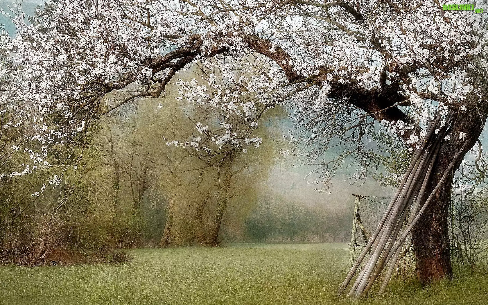 Rośliny: Malarstwo, Obraz, Ogródek, Drzewo, Okwiecone, Płotek