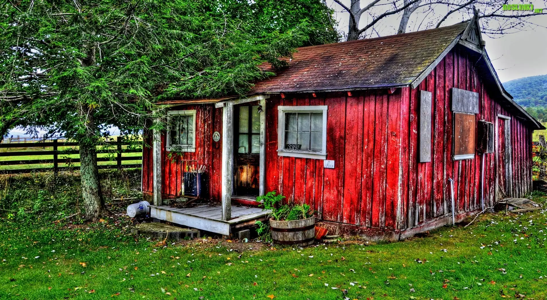 Rośliny: Mały, Domek, Drzewo, Płot