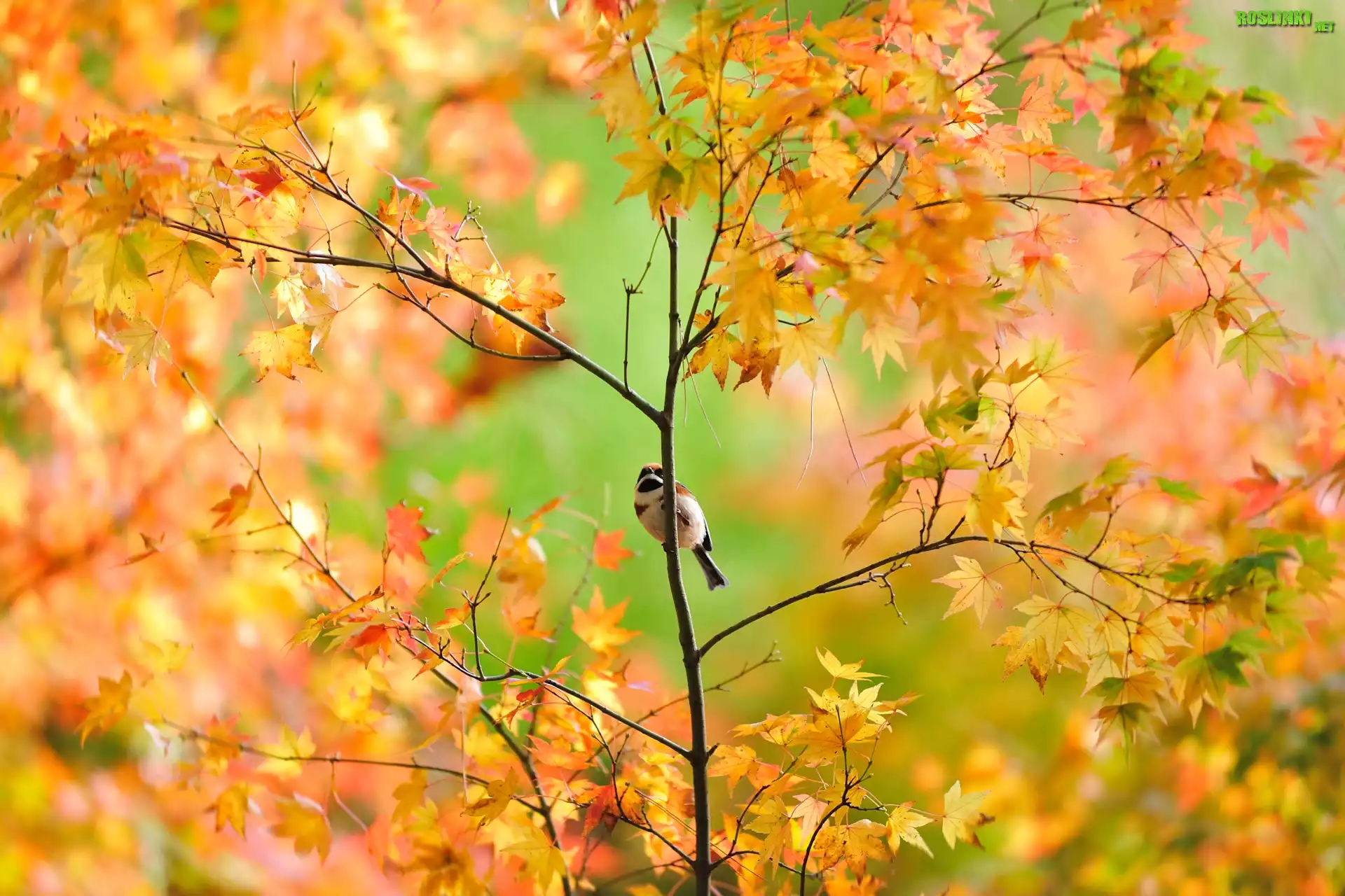 Rośliny: Mały, Ptaszek, Drzewo, Jesień