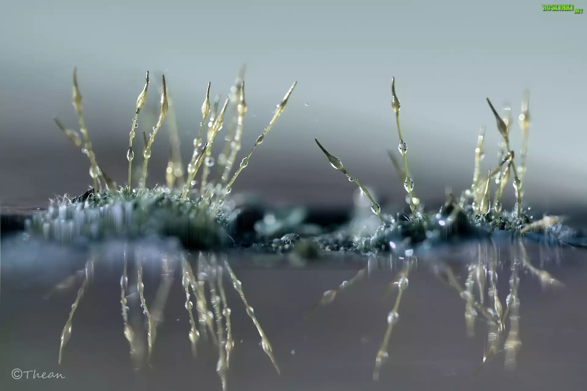 Rośliny: Mchy, Źdźbła, Makro, Odbicie