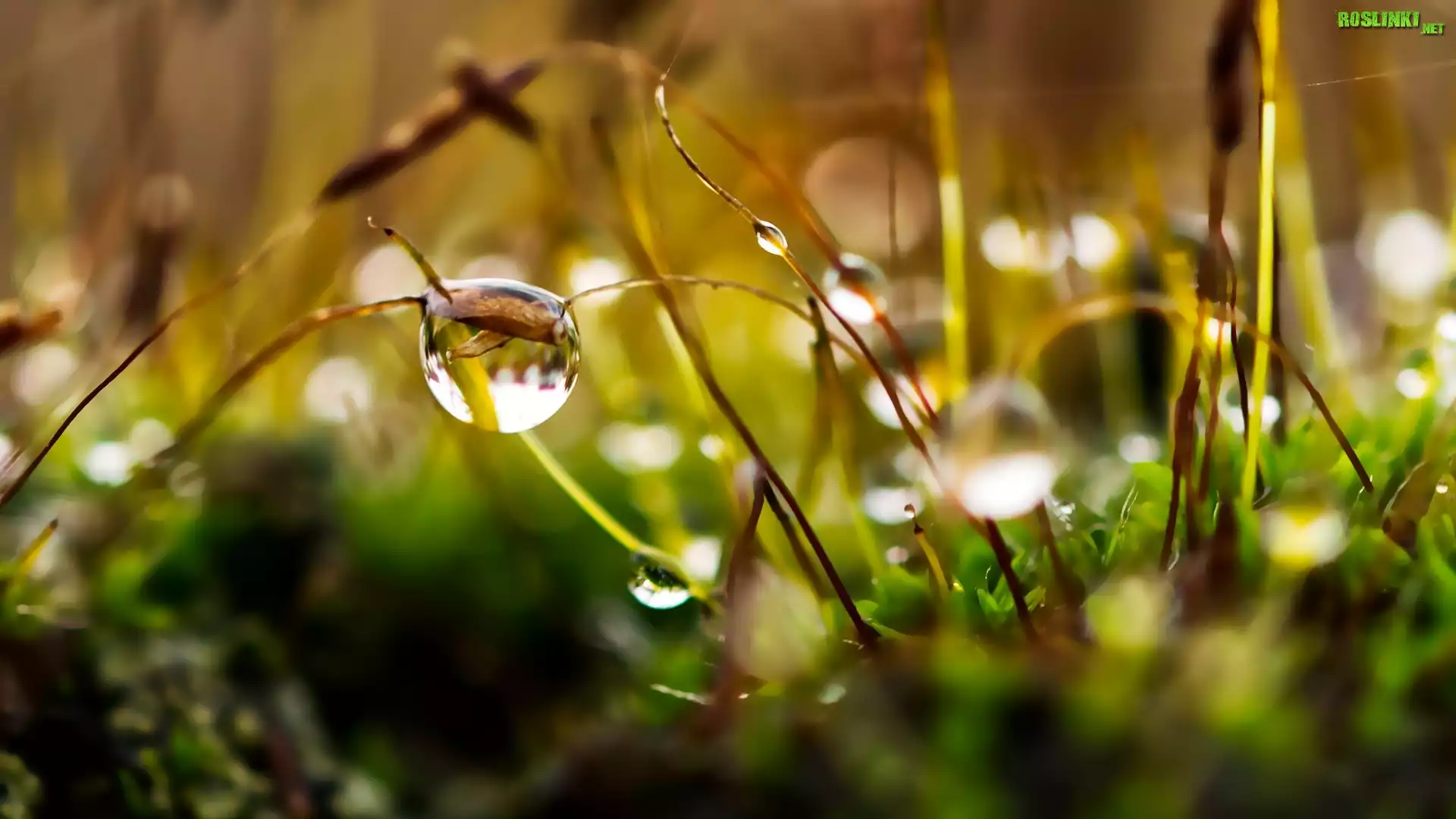 Rośliny: Mech, Gałązki, Pajęczyna, Krople, Makro