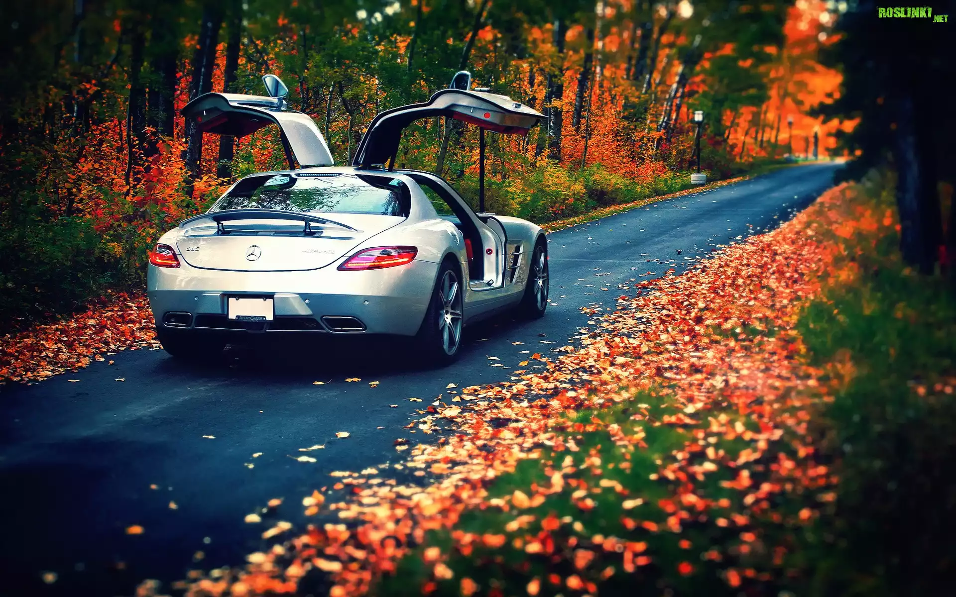 Rośliny: Mercedes, SLS, Las, Droga, Liście, Jesień