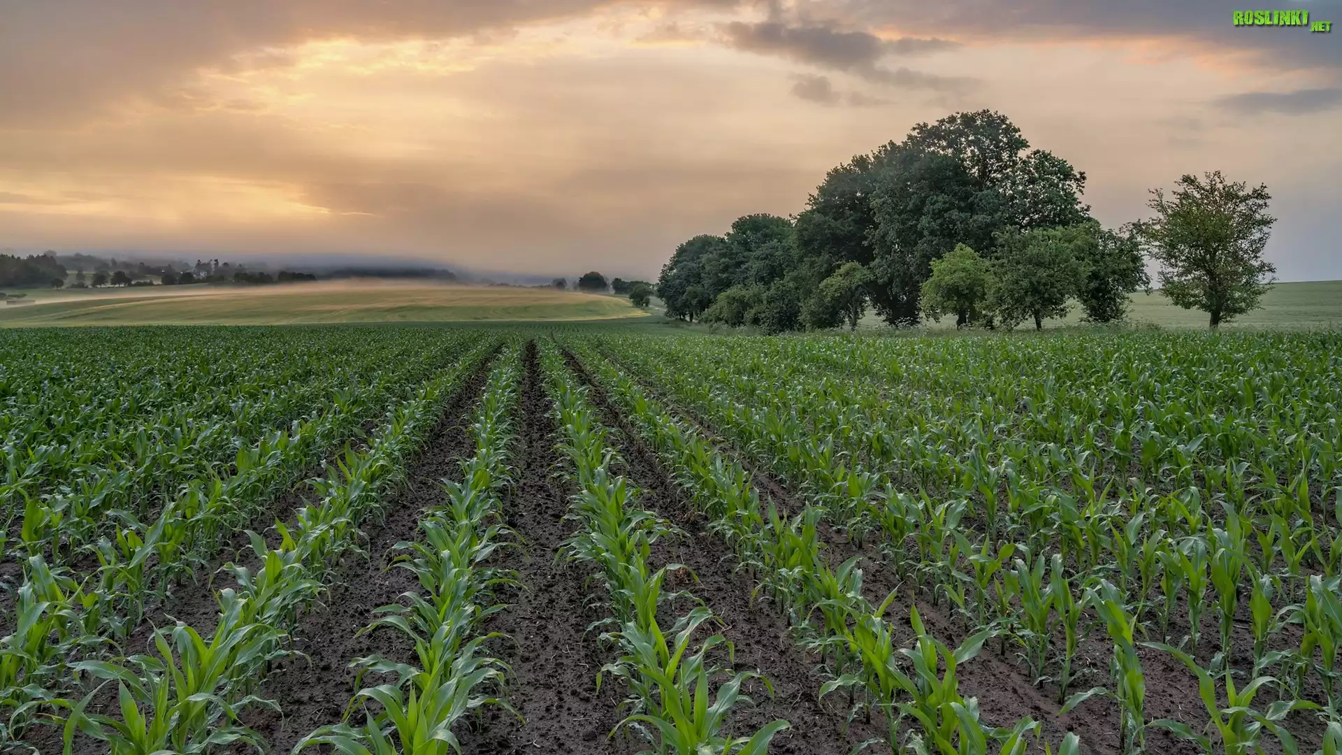 Rośliny: Drzewa, Pole, Kukurydzy, Mgła