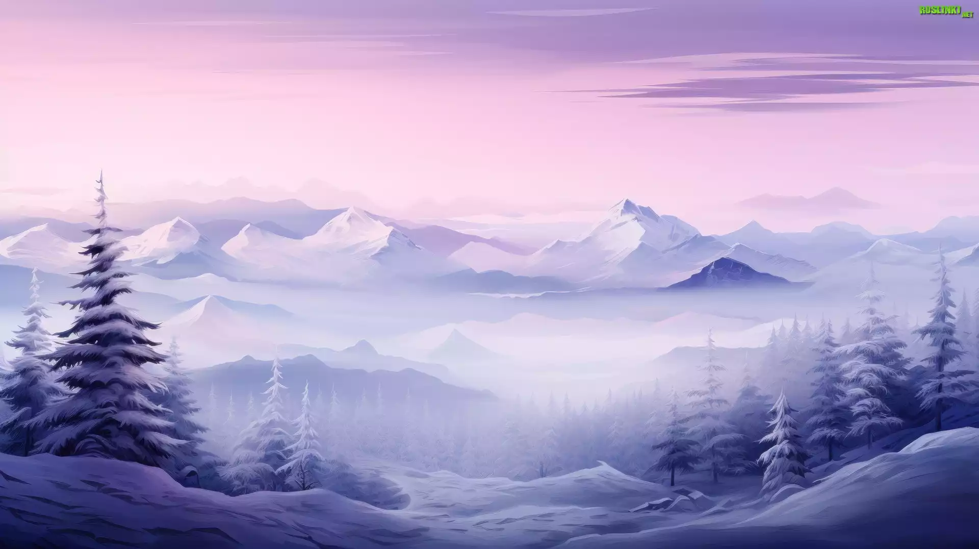 Rośliny: Zima, Mgła, Góry, Drzewa, 2D