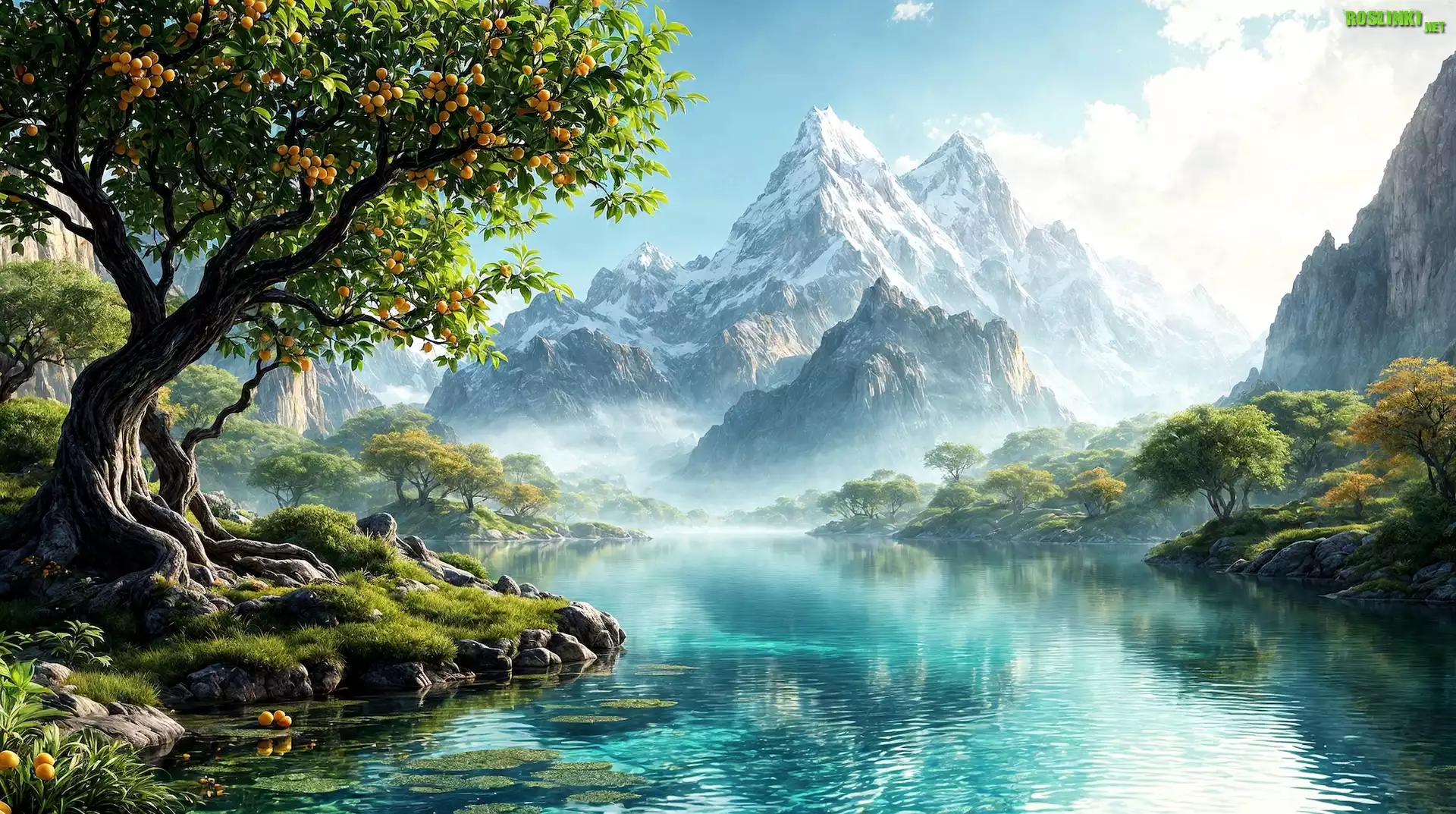 Rośliny: Góry, Rzeka, Drzewa, Mgła