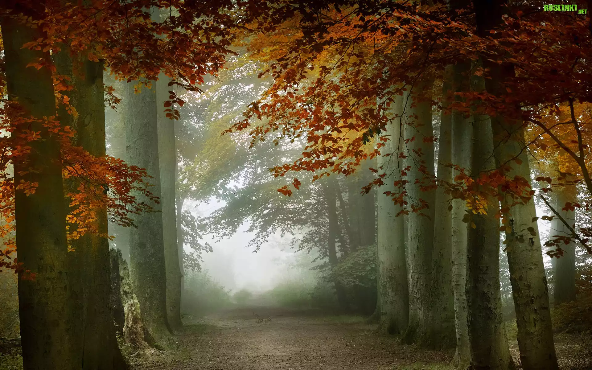 Rośliny: Las, Drzewa, Jesień, Mgła