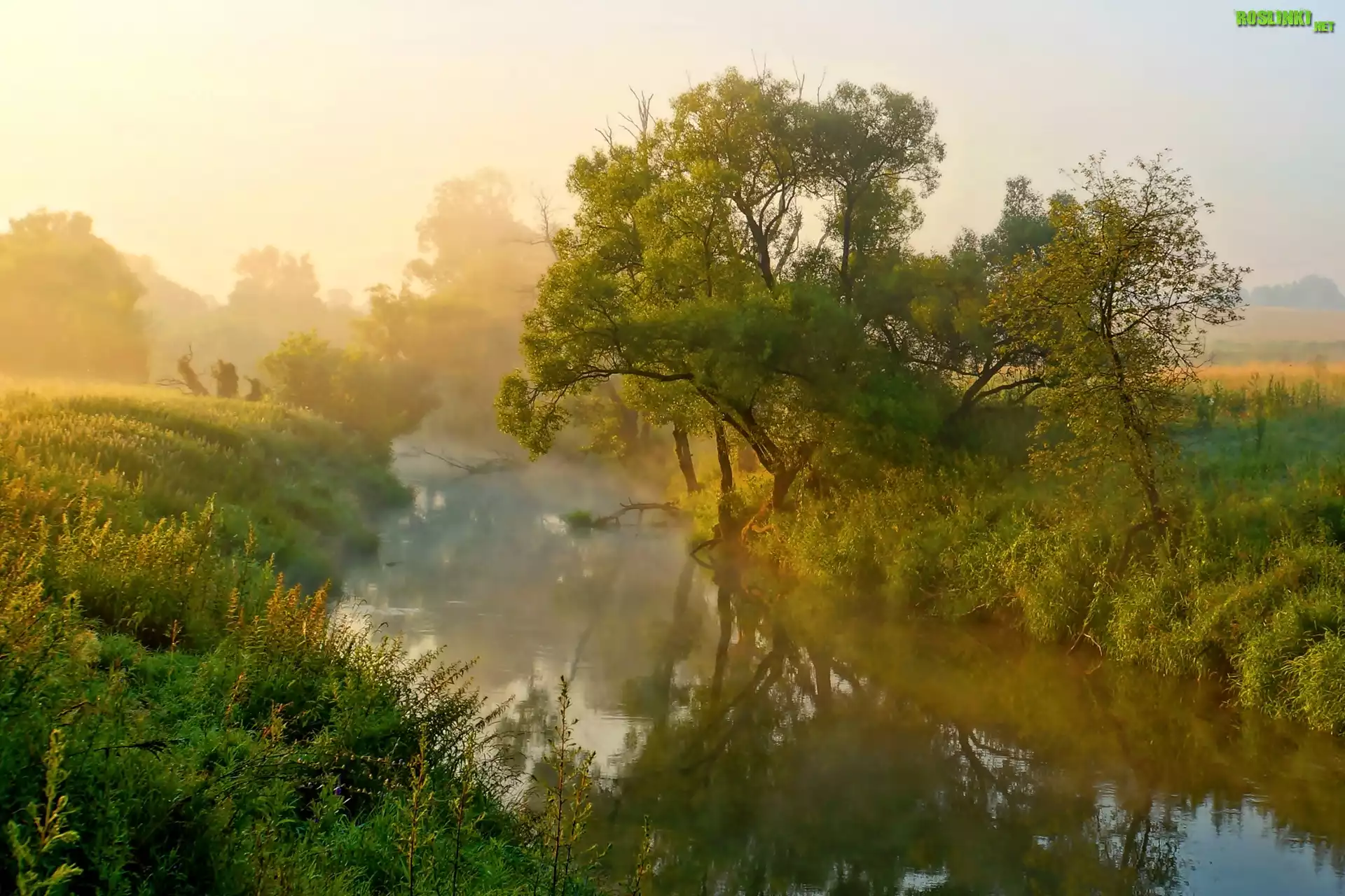 Rośliny: Rzeka, Mgła, Drzewa
