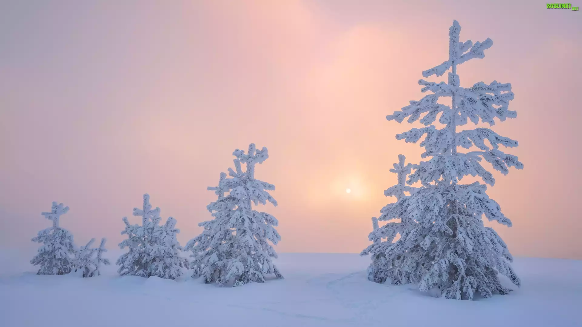 Rośliny: Zima, Ośnieżone, Drzewa, Mgła