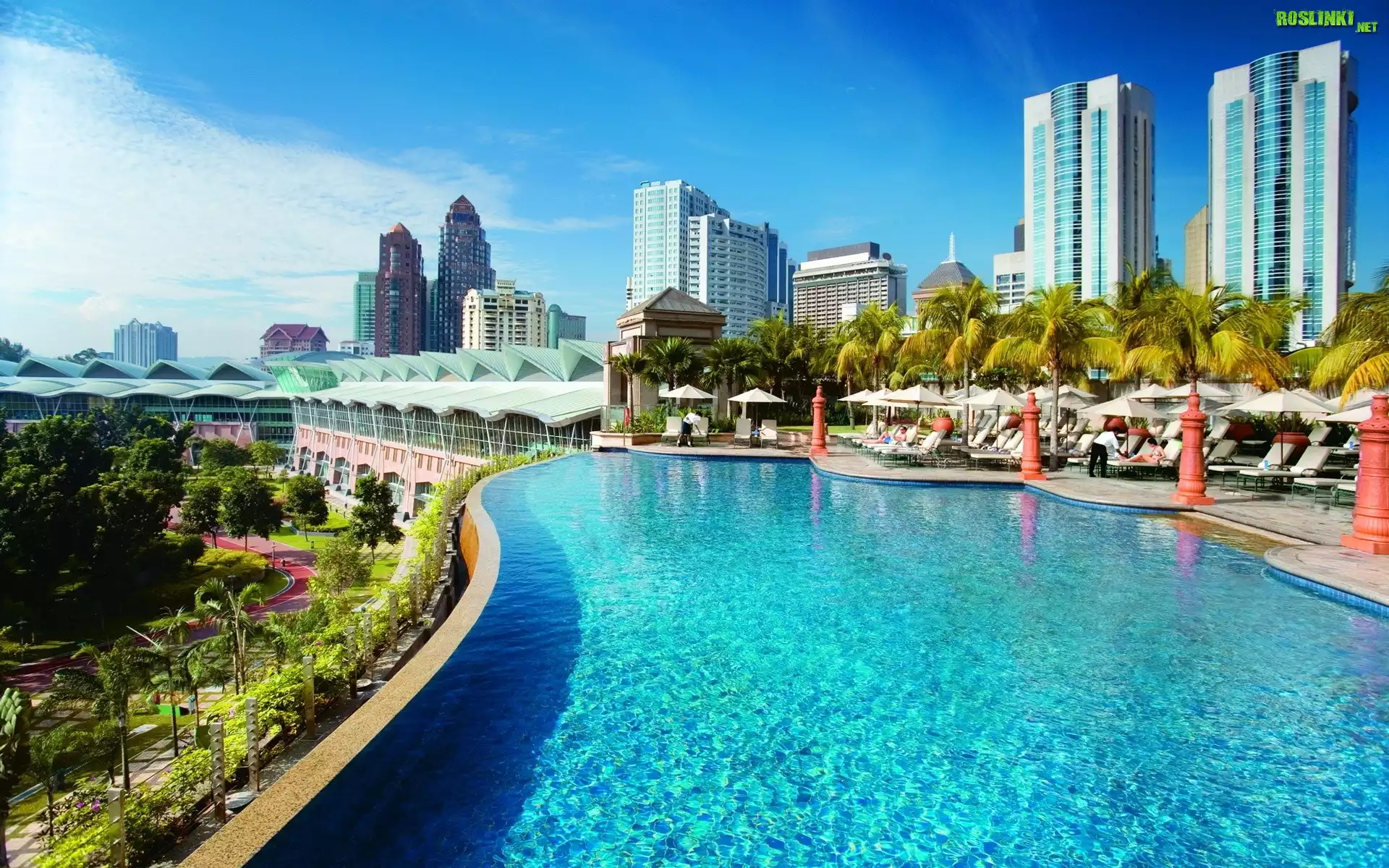 Rośliny: Miasto, Basen, Palmy, Niebo