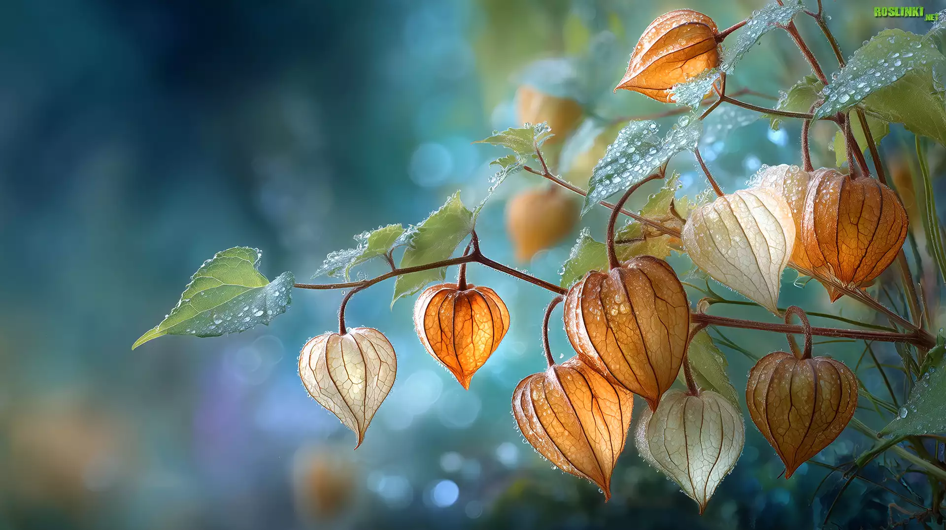 Rośliny: Mokra, Miechunka rozdęta, Grafika AI