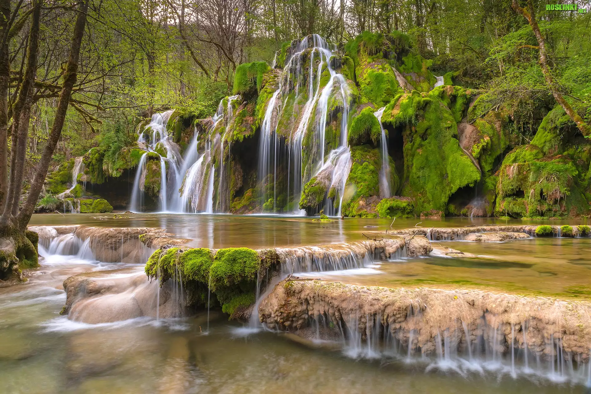 Wodospad, Kaskada Cascades de tufs, Miejscowość Baume Les Messieurs, Departament Jura, Francja