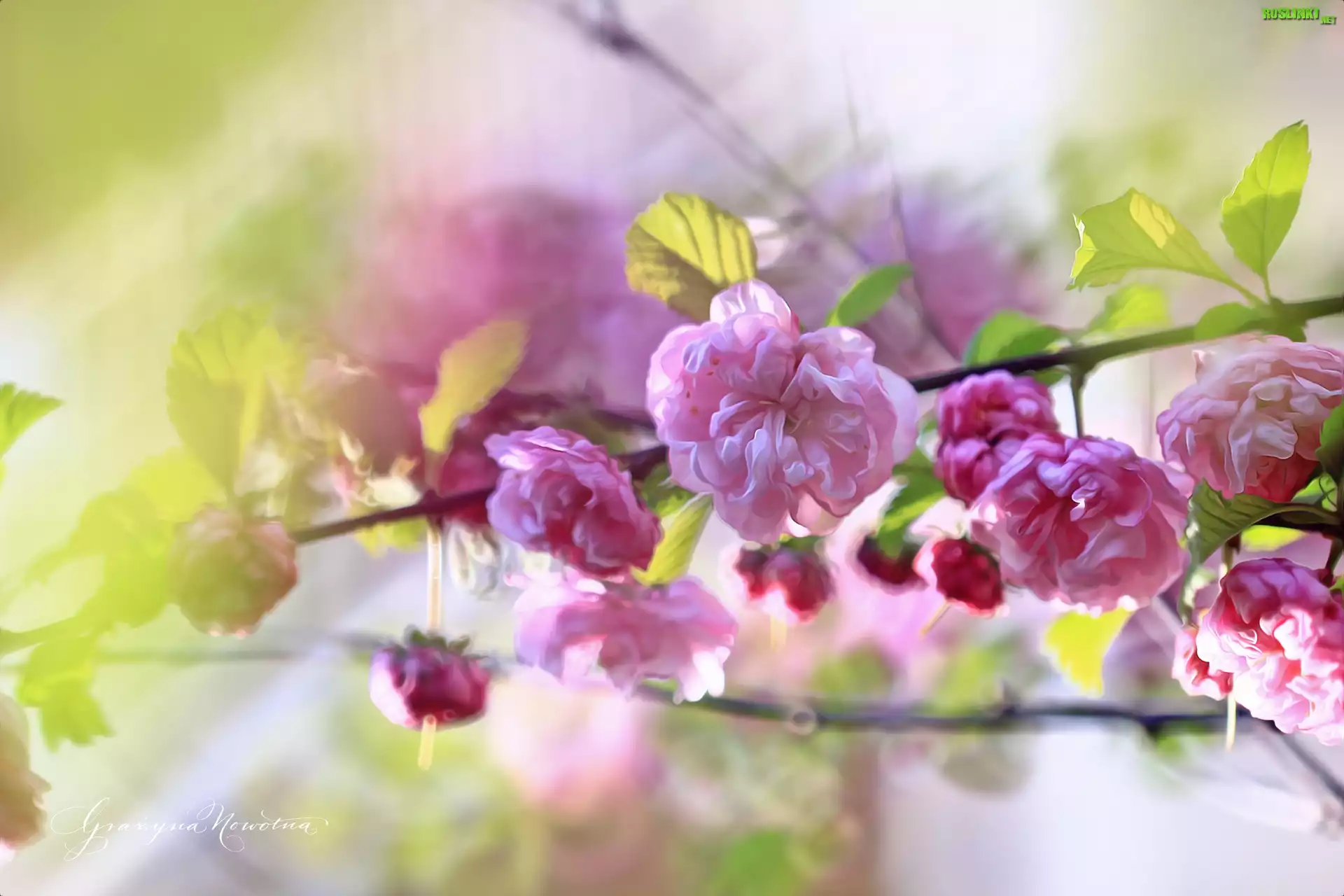Migdałowiec, Różowe, Kwiaty, Krzew
