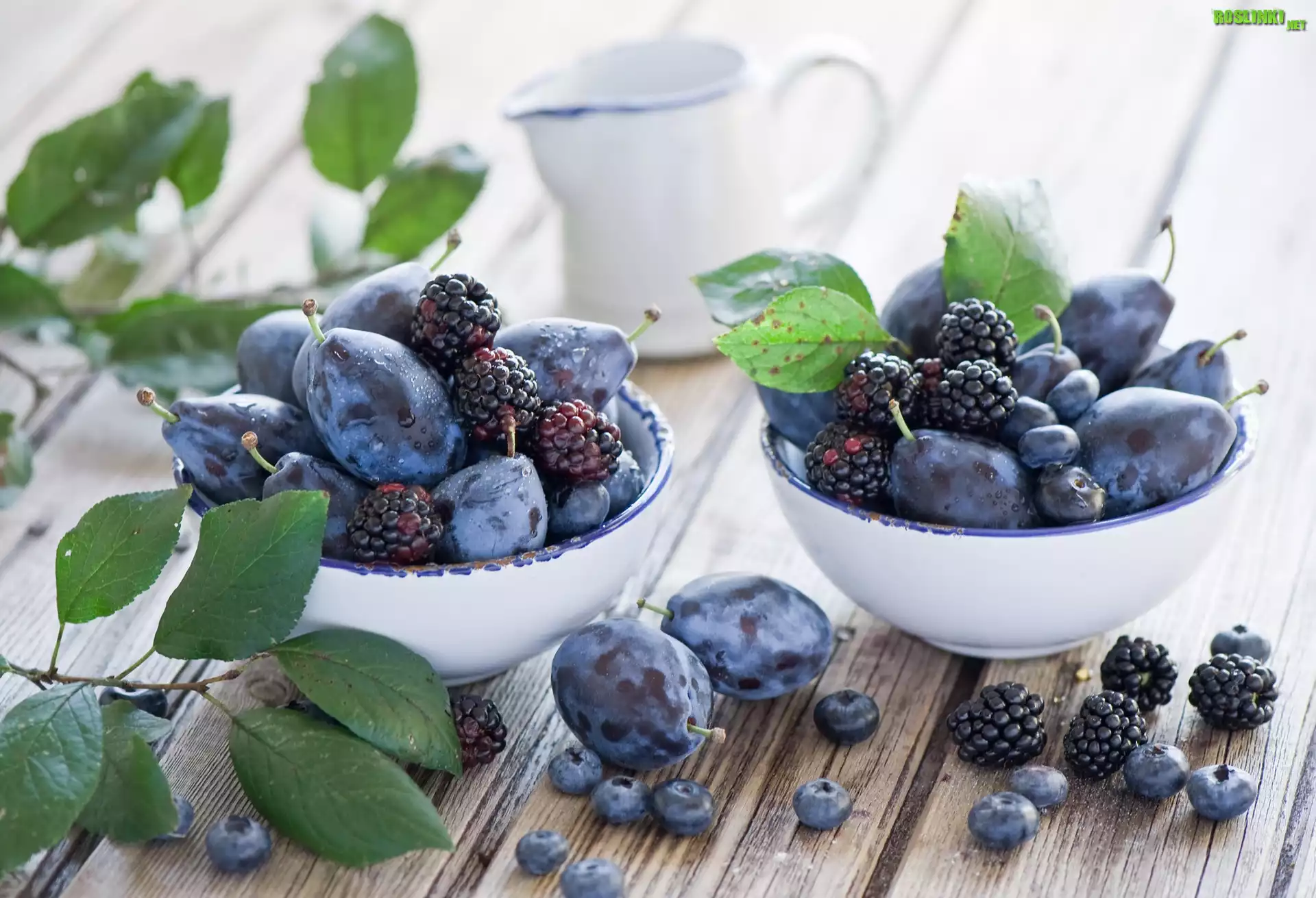 Rośliny: Miseczki, Z, Owocami, Liście