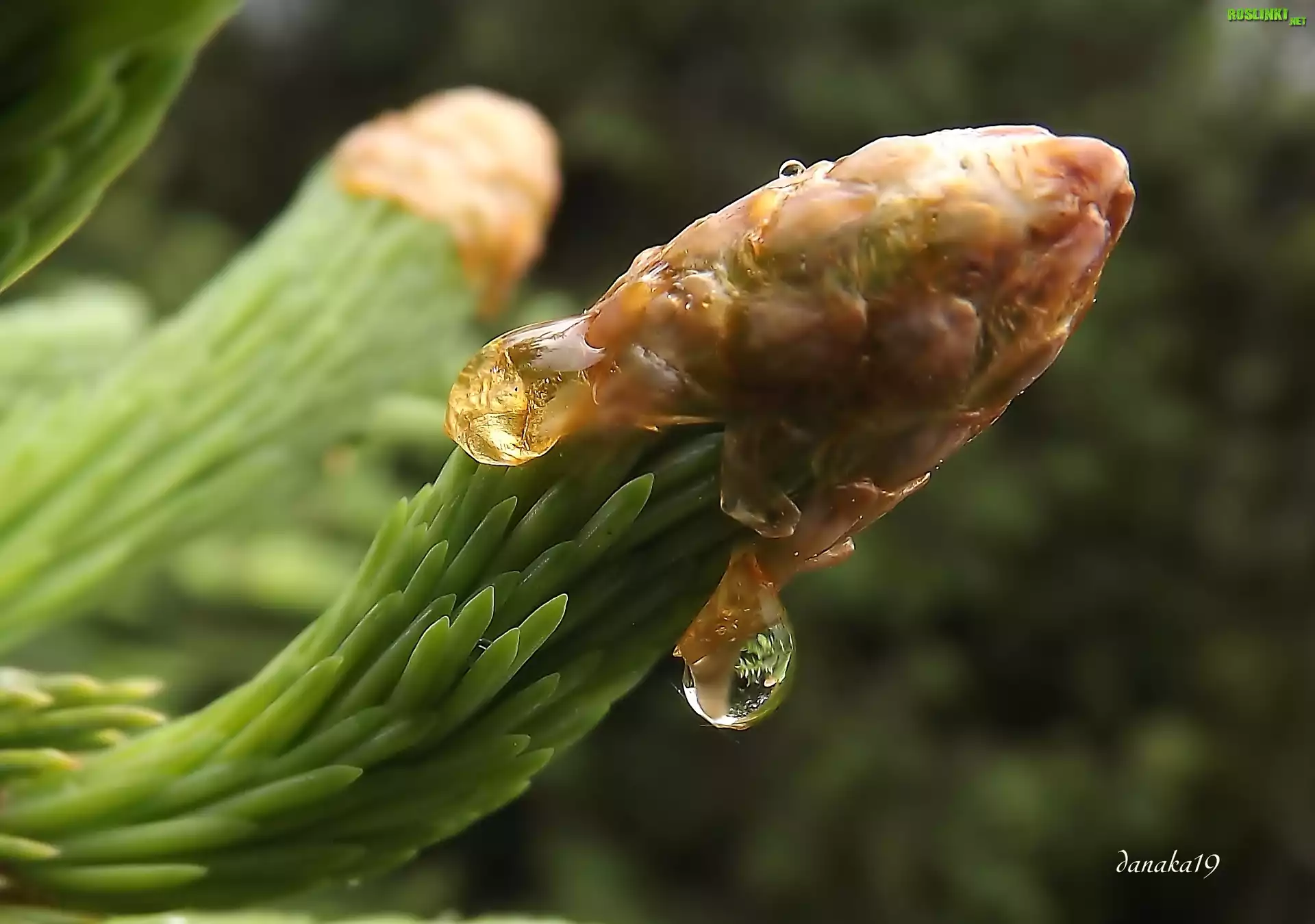 Rośliny: Młode, Pędy, Świerku, Krople, Deszczu, Makro