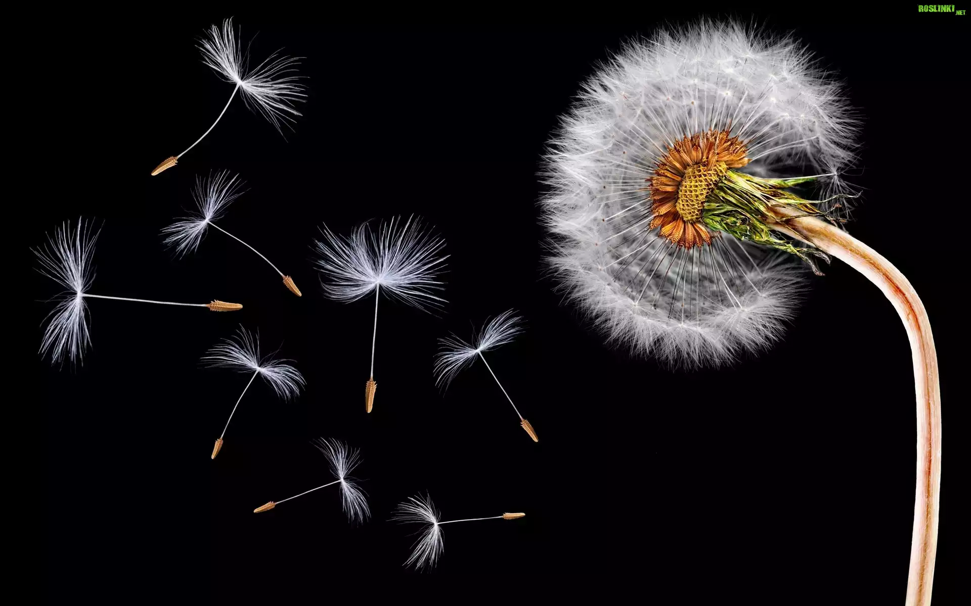 Rośliny: Mniszek pospolity, Makro, Czarne tło, Dmuchawce