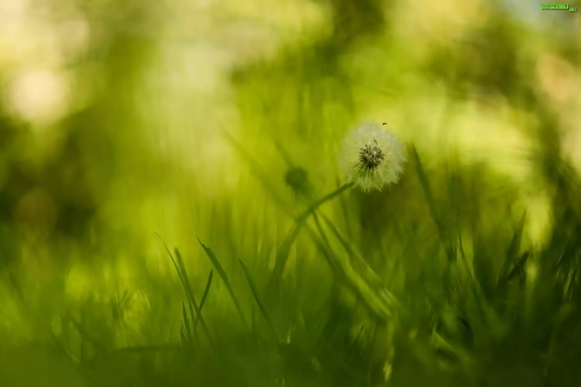 Rośliny: Mniszek pospolity, Dmuchawiec, Trawa, Rozmycie