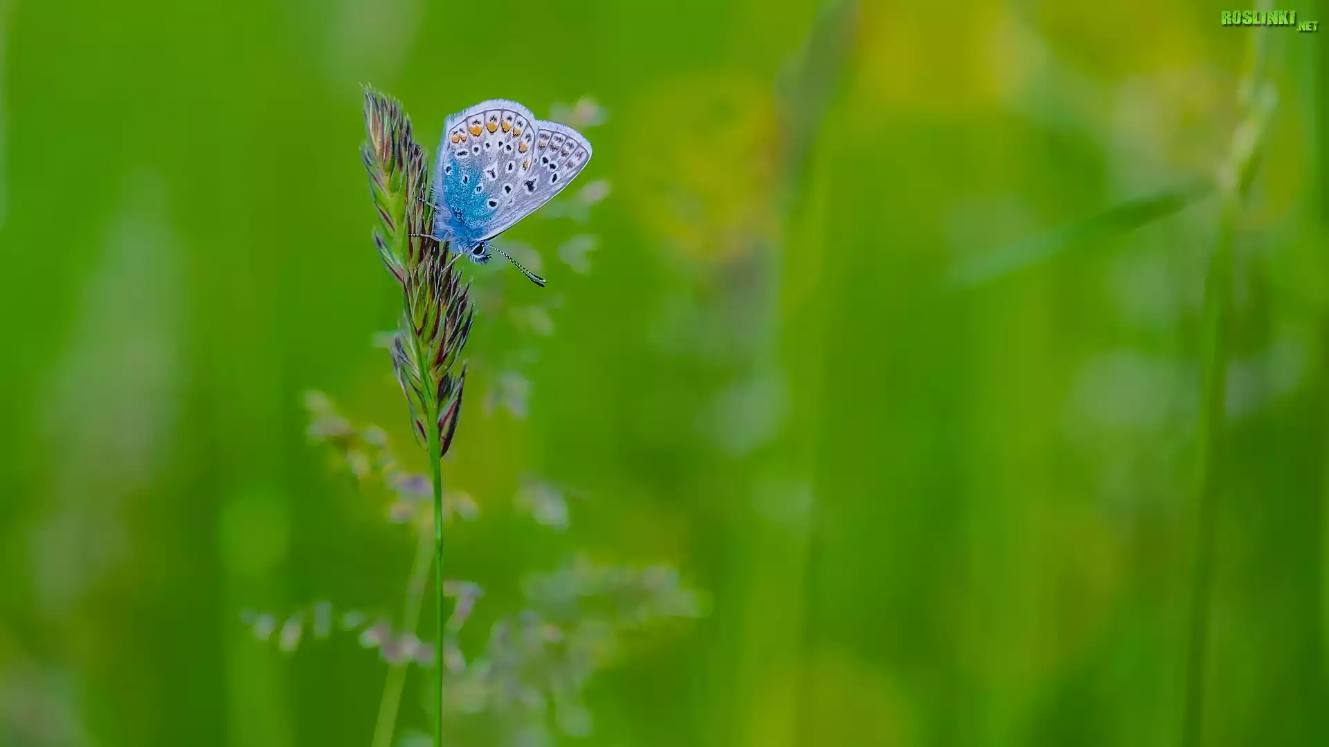 Rośliny: Motyl, Modraszek ikar, Źdźbło, Trawa, Zielone, Tło