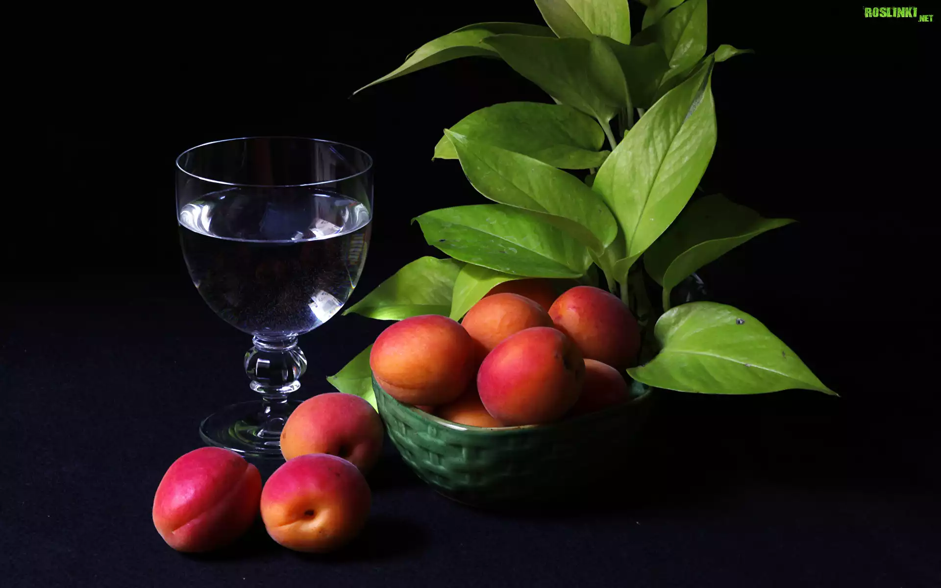Rośliny: Morele, Kieliszek, Woda, Liście