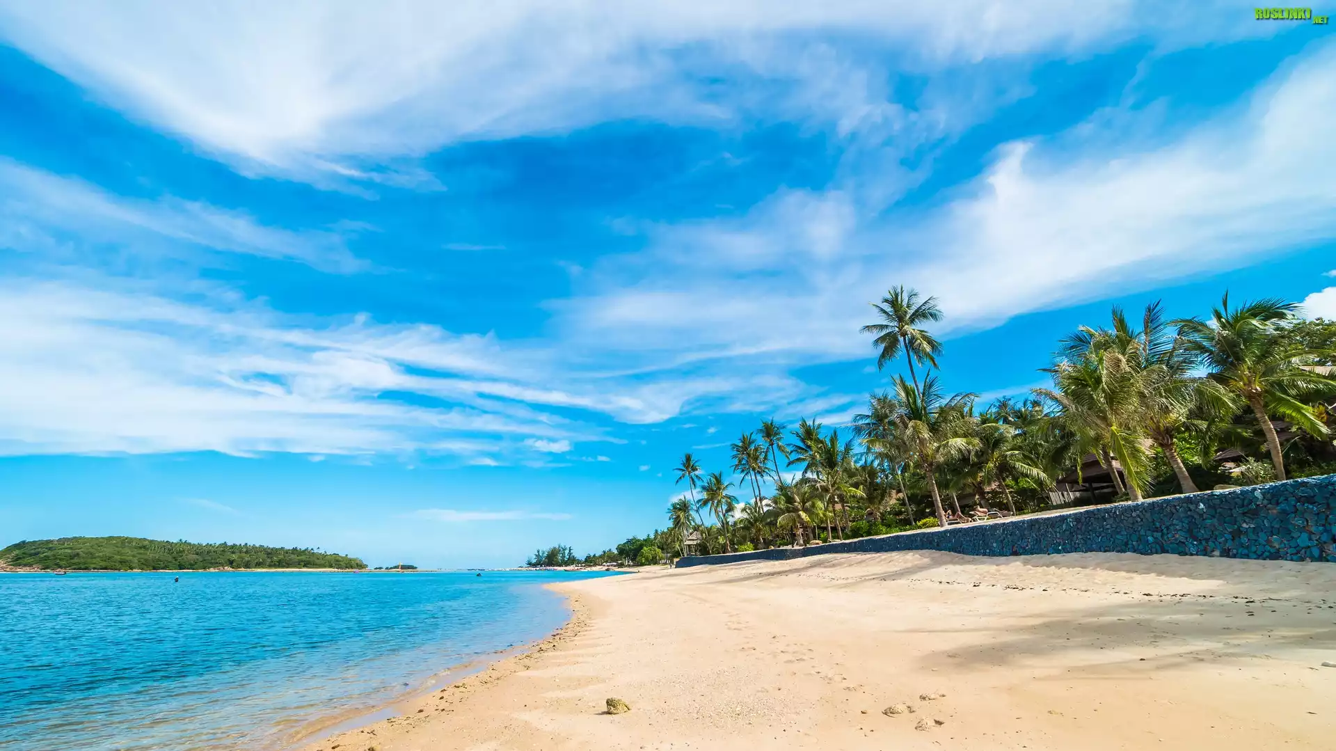 Rośliny: Morze, Plaża, Brzeg, Palmy, Chmury, Tropiki
