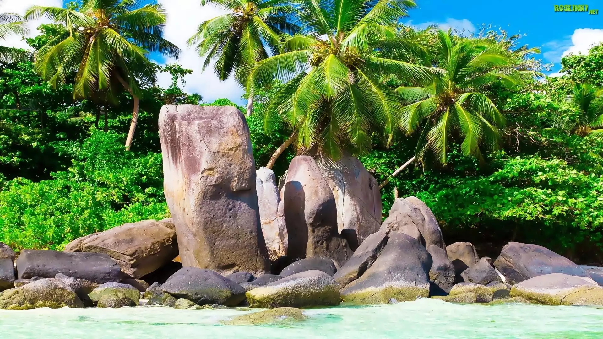 Rośliny: Morze, Plaża, Kamienie, Palmy