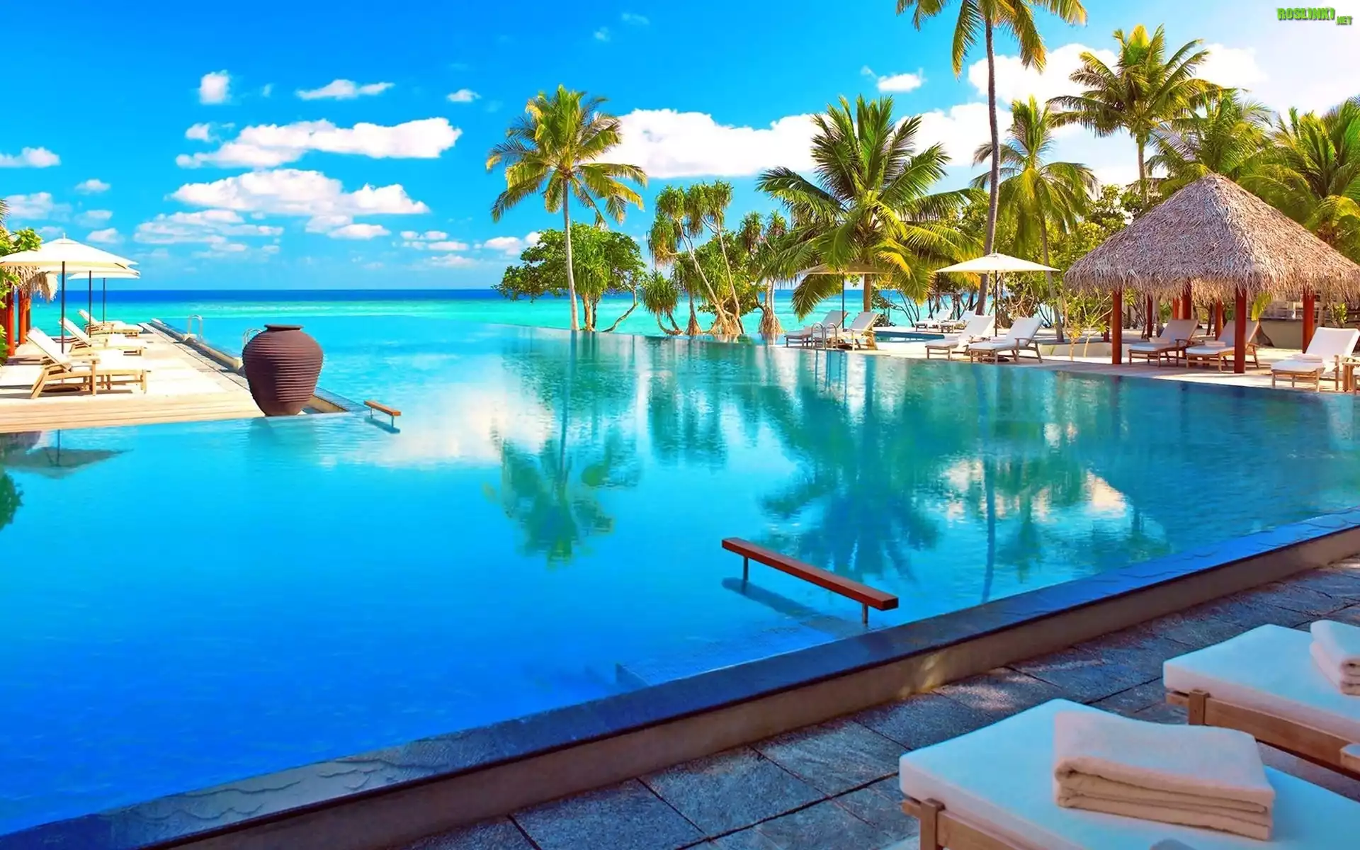 Rośliny: Basen, Leżaki, Palmy, Wakacje