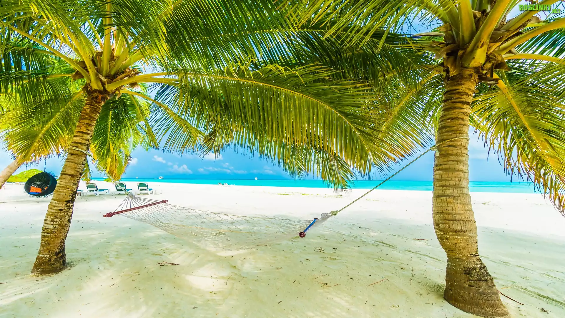 Rośliny: Morze, Plaża, Palmy, Hamak, Leżaki, Wakacje