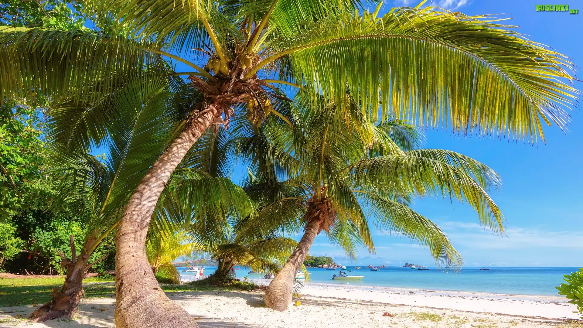 Rośliny: Morze, Plaża, Palmy, Wyspa Mahe, Seszele