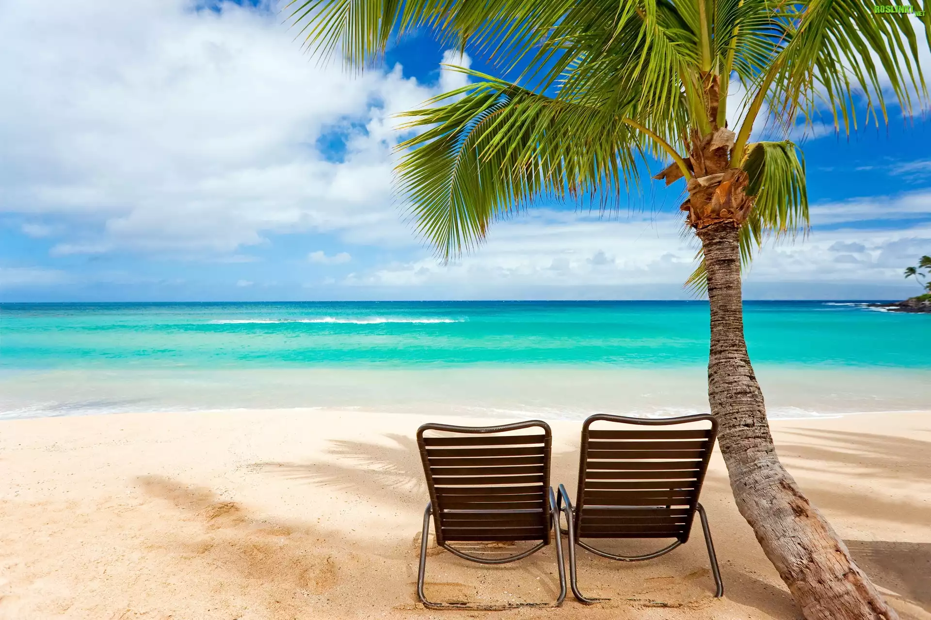 Rośliny: Morze, Plaża, Palma, Leżaki, Wakacje