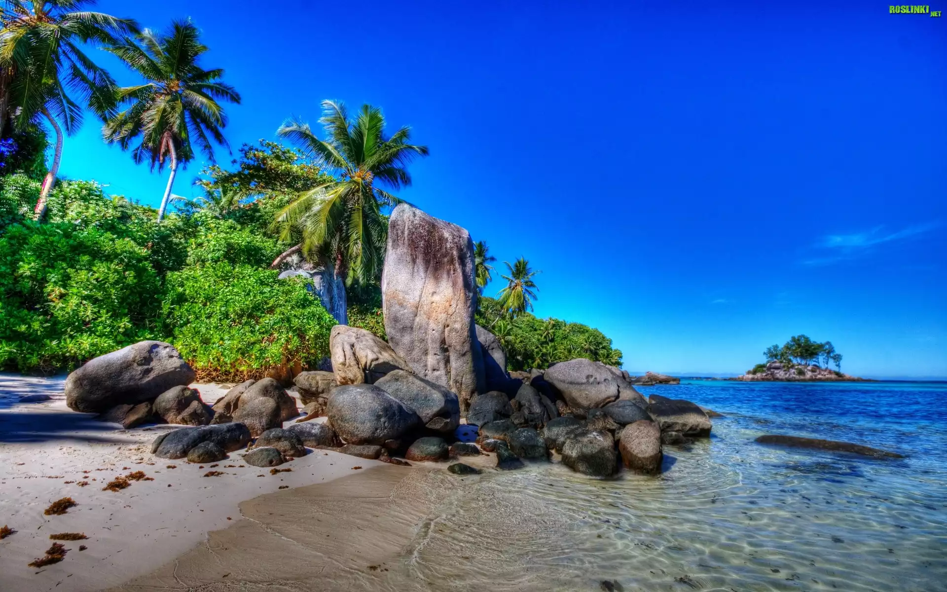 Rośliny: Morze, Plaża, Palmy, Skały