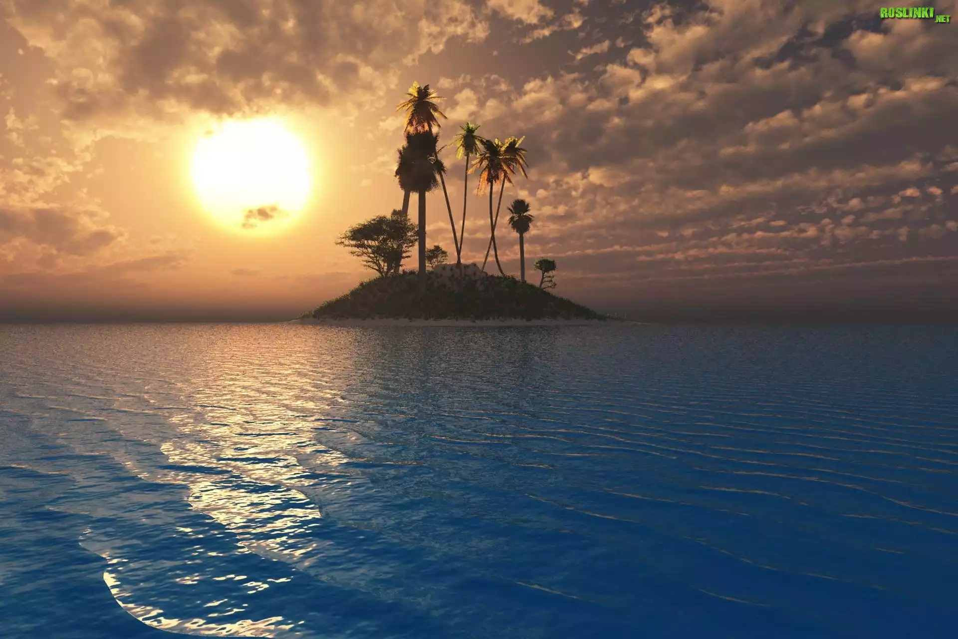Rośliny: Morze, Zachód Słońca, Wyspa, Palmy, Chmury