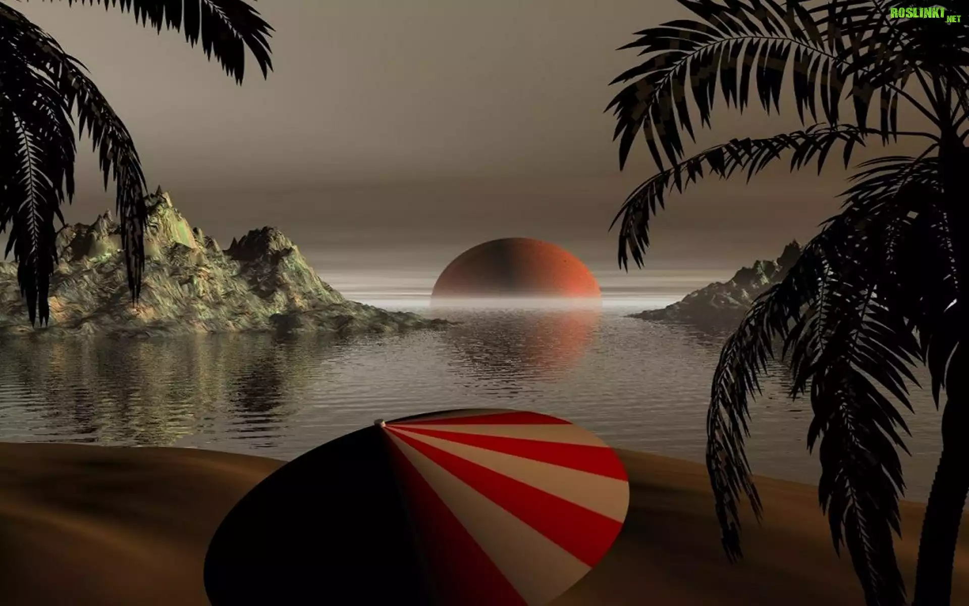 Rośliny: Tropiki, Morze, Skały, Palmy, Zachód, Słońca, Parasol