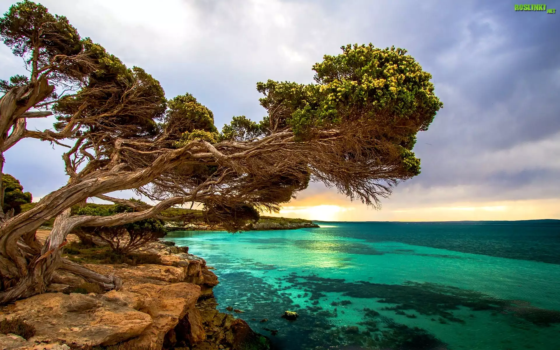 Rośliny: Morze, Skały, Pochylone, Drzewo