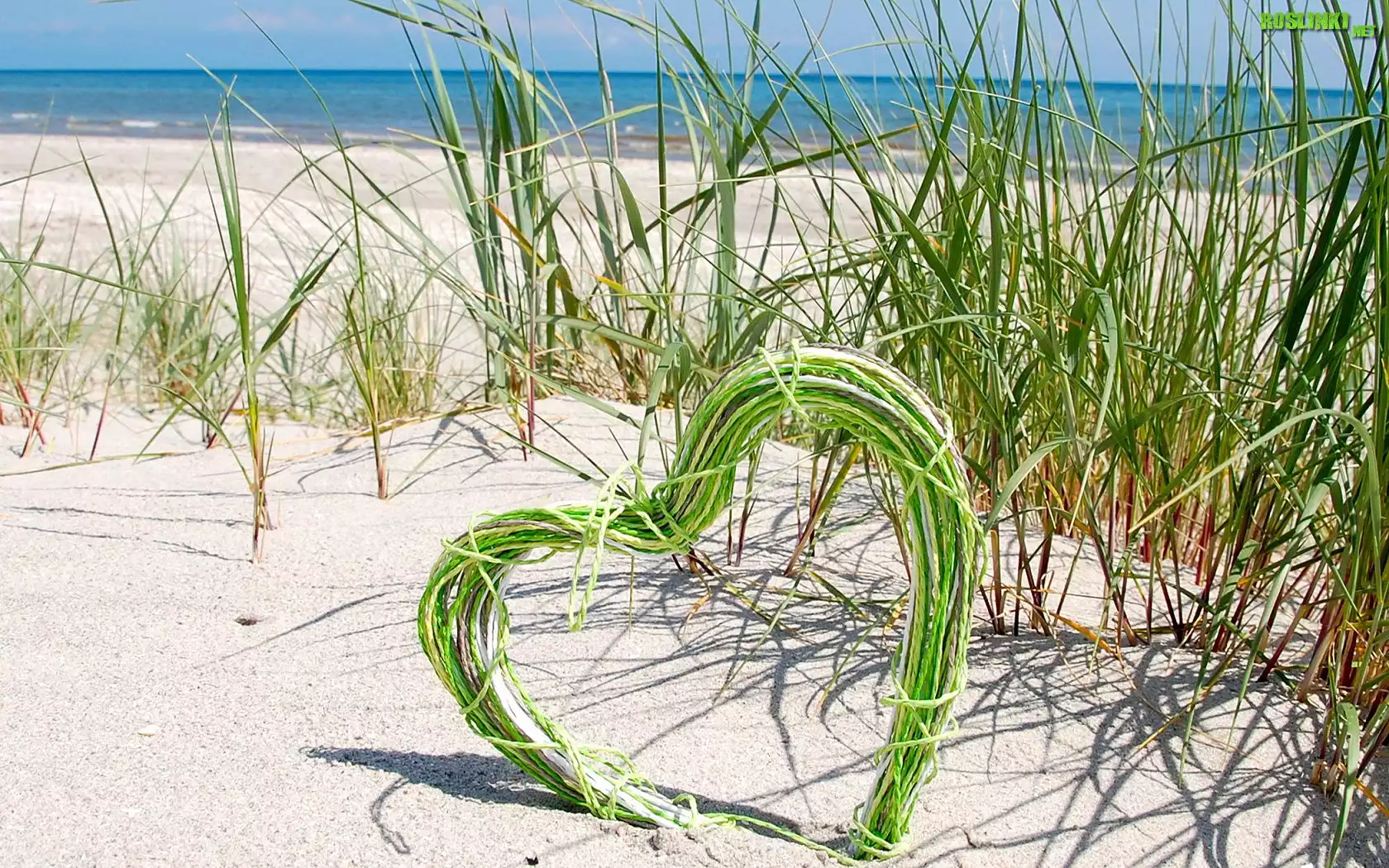 Rośliny: Morze, Plaża, Piasek, Trawy, Serce, Sznurek