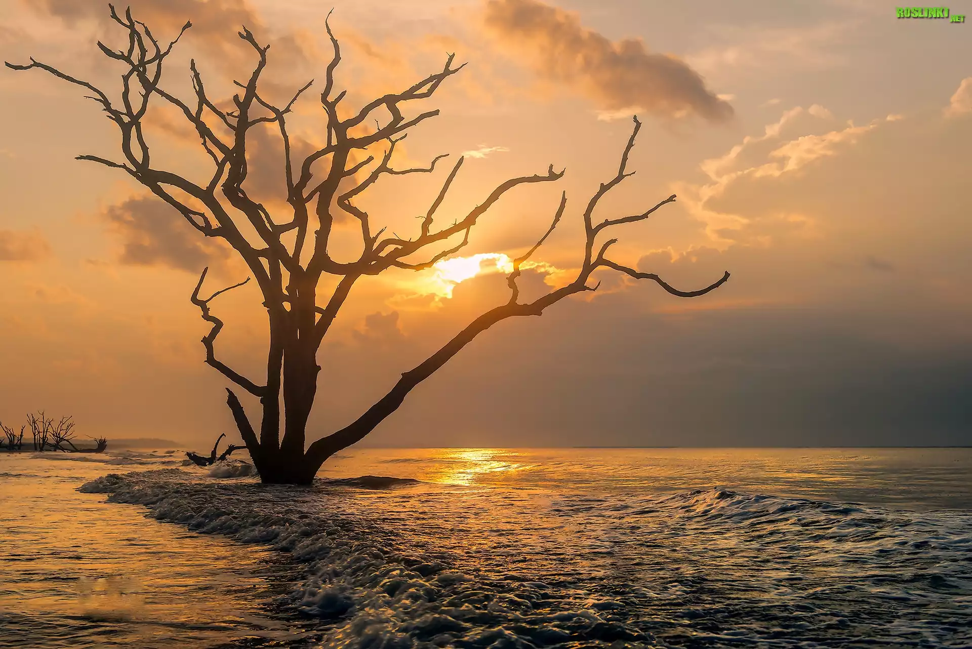 Rośliny: Morze, Zachód, Słońca, Uschnięte, Drzewo
