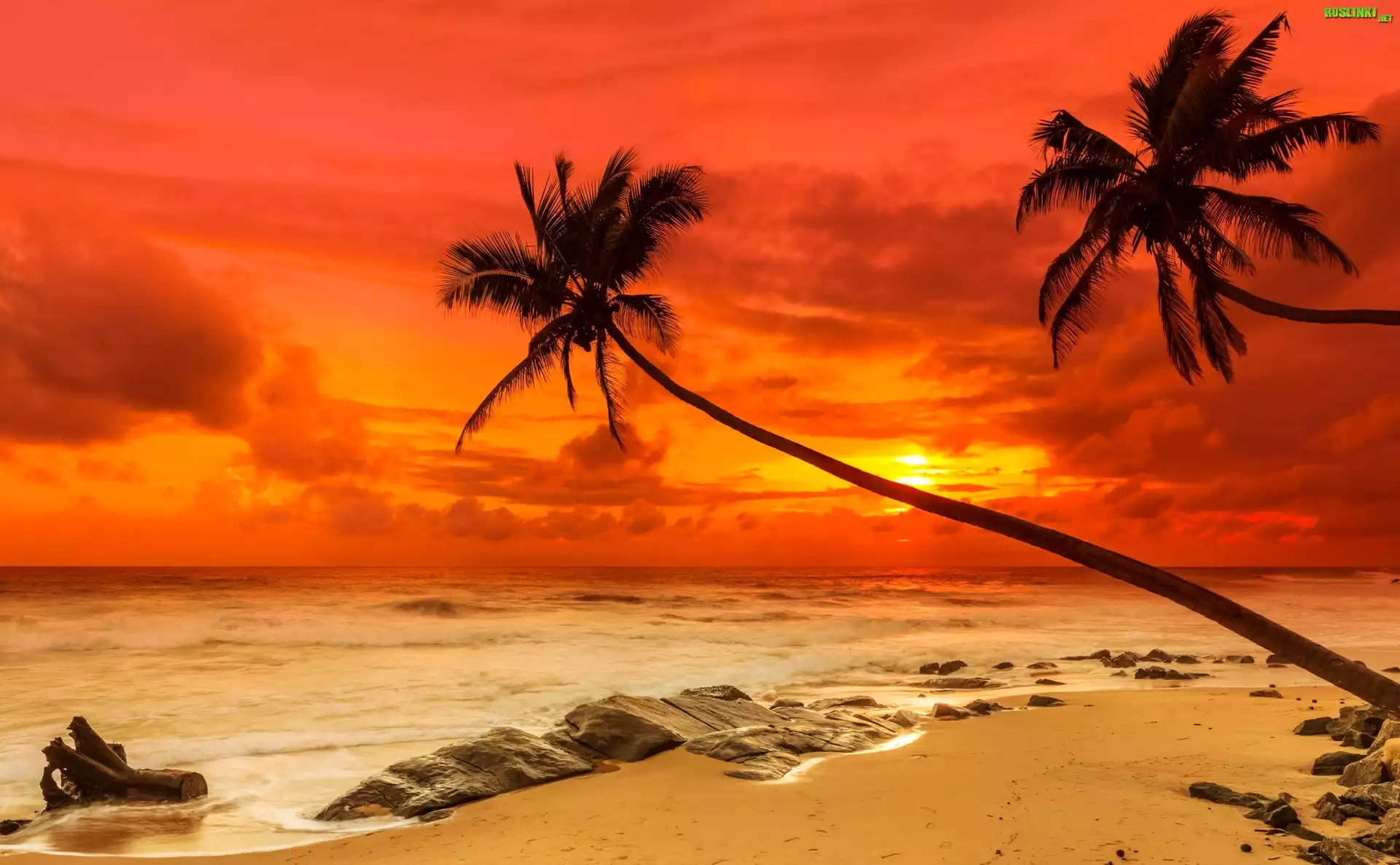 Rośliny: Morze, Brzeg, Palmy, Zachód, Słońca