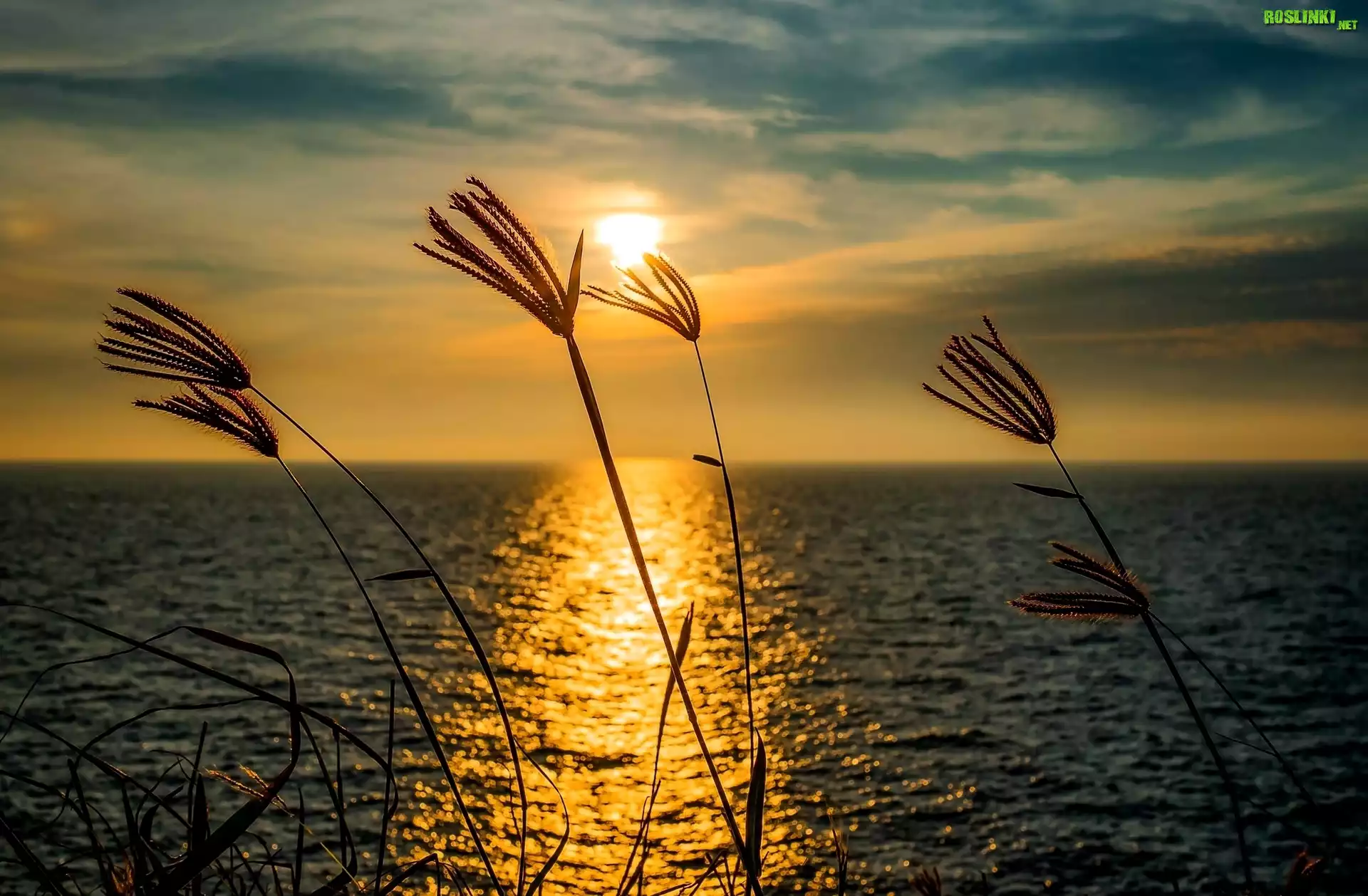Rośliny: Morze, Źdźbło, Trawy, Zachód, Słońca