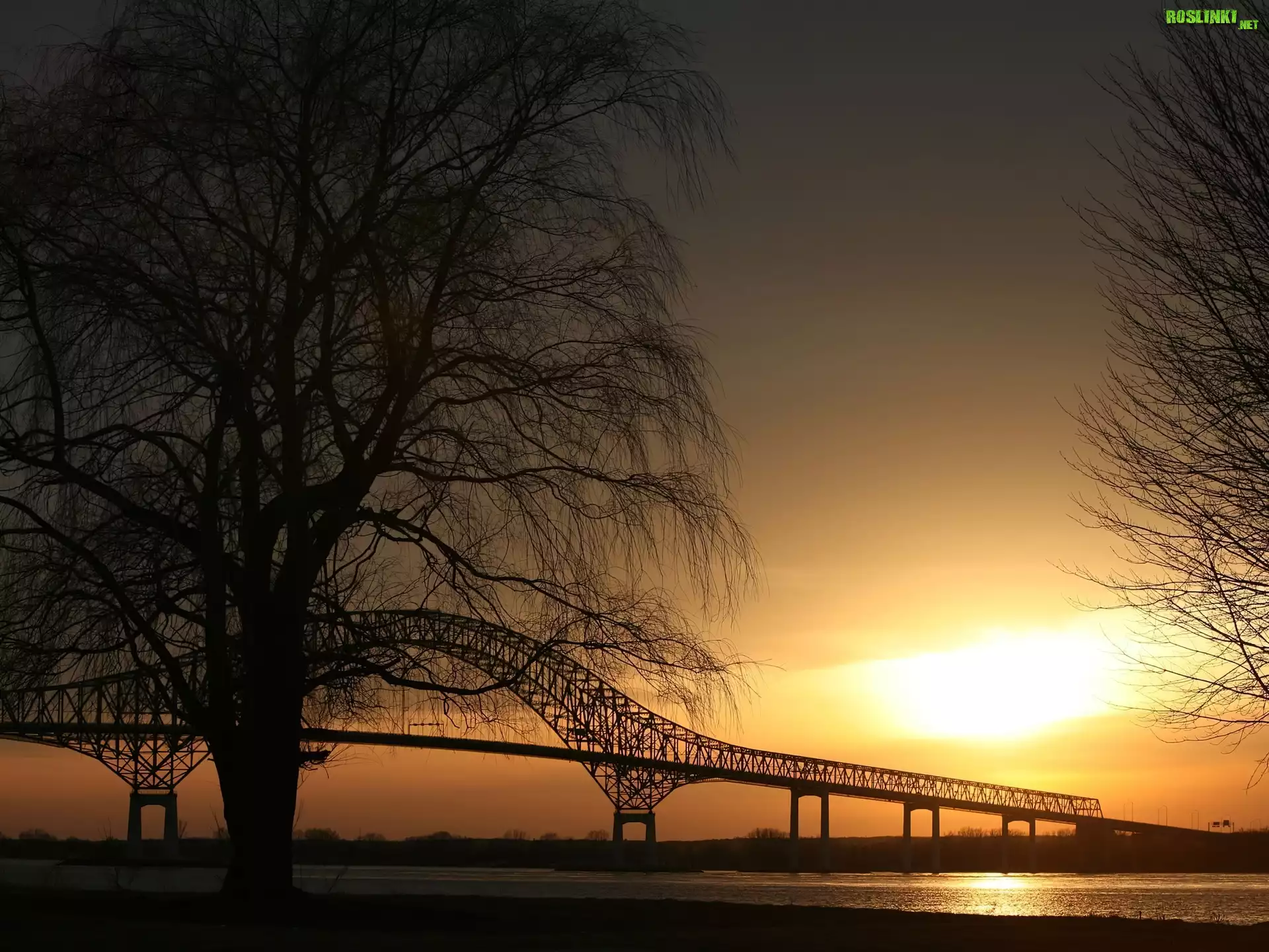 Rośliny: Most, Drzewa, Zachód, Słońca