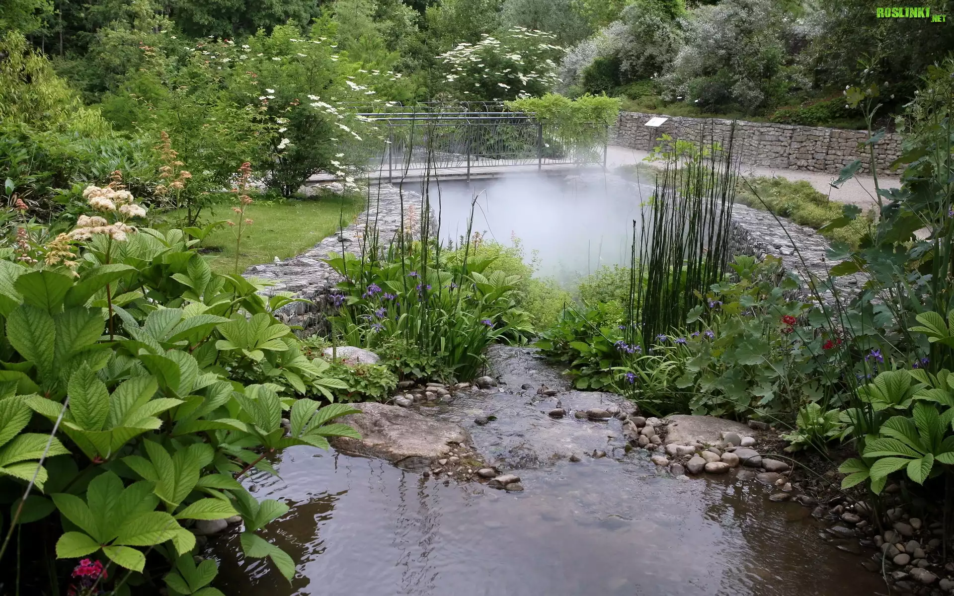 Rośliny: Mostek, Krzewy, Kwiaty, Ogród