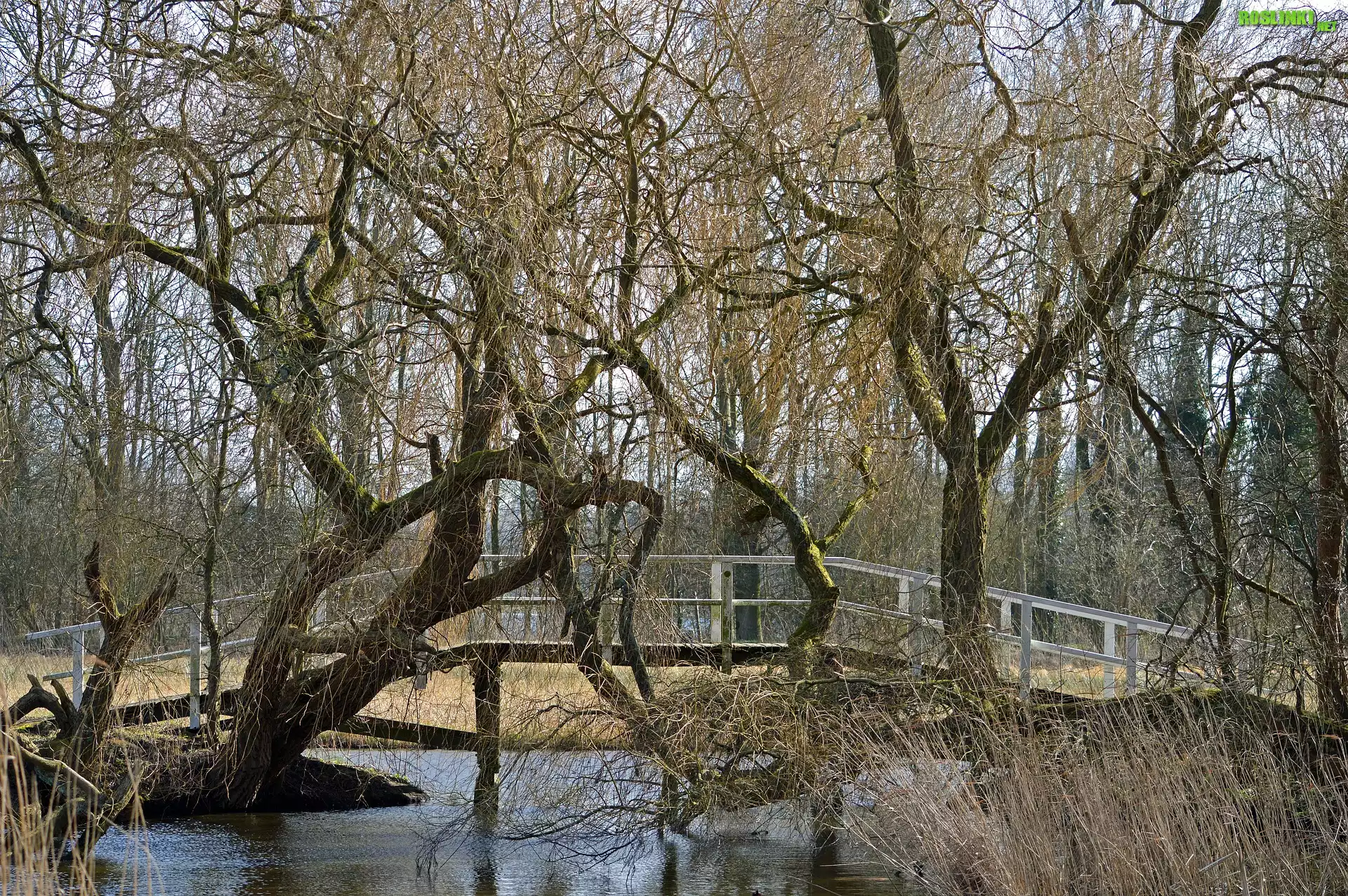 Mostek, Drzewa, Wierzba płacząca, Trawy